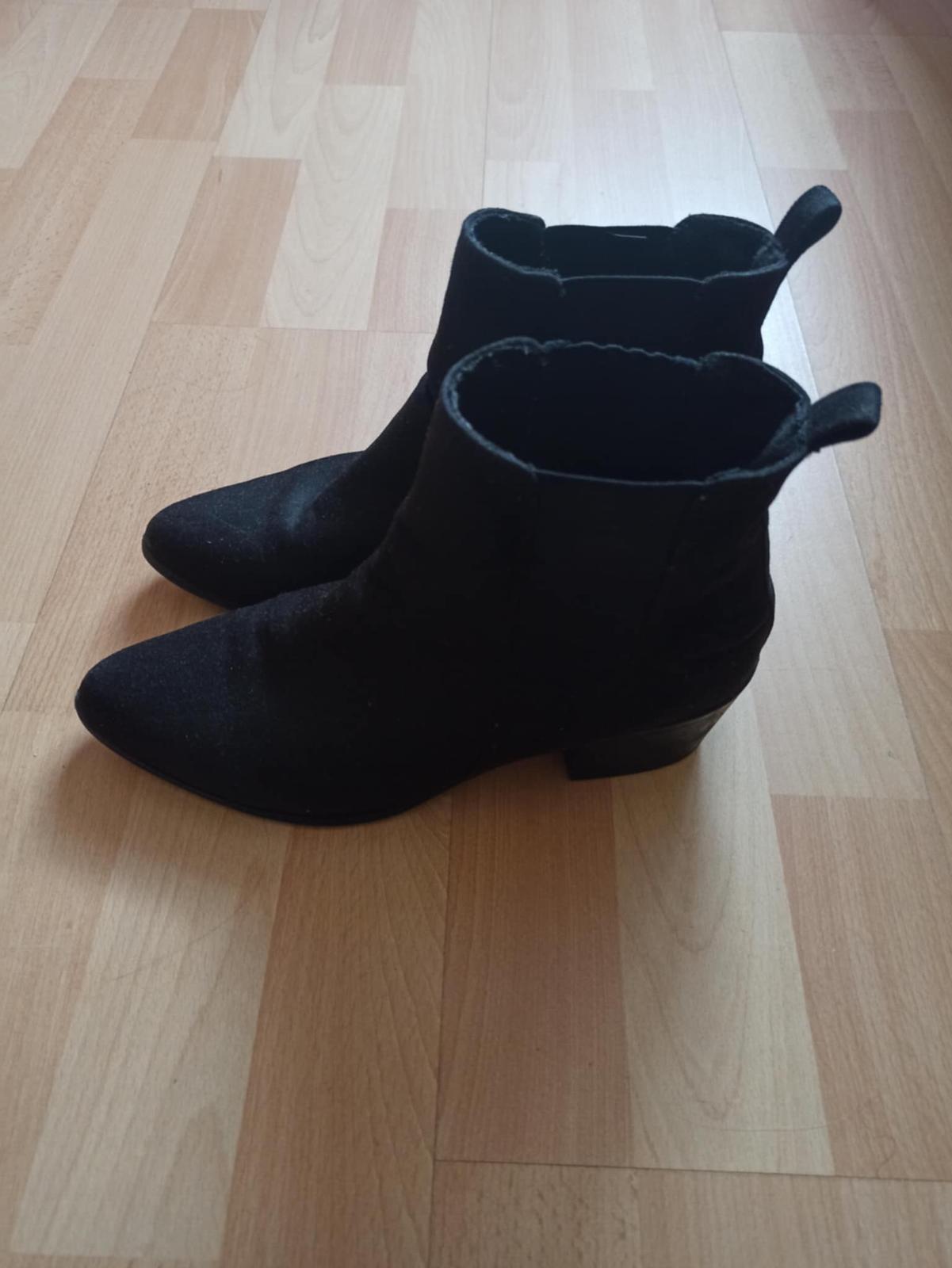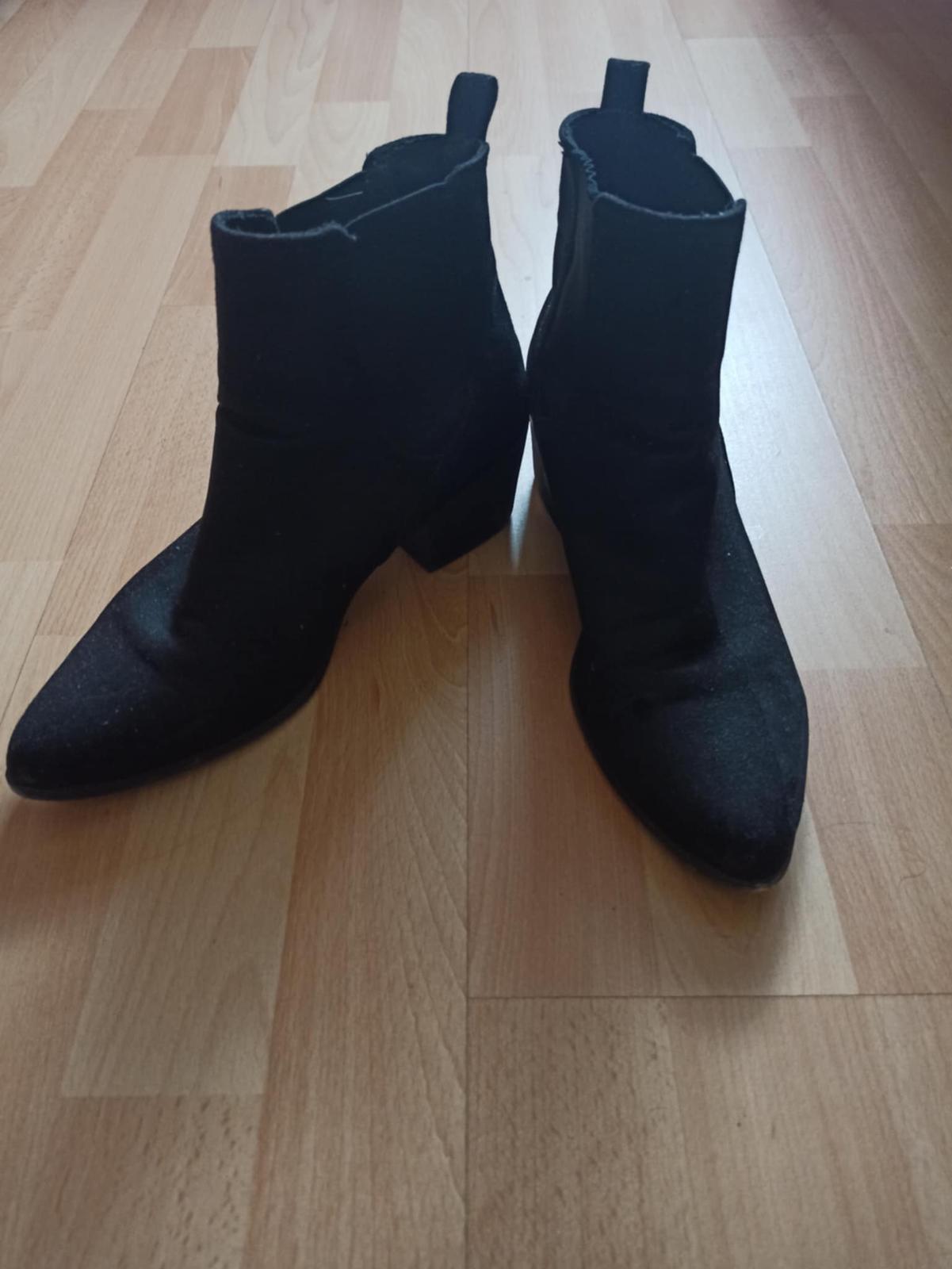 Zamatové, členkové čižmy, neoteplene, na širokom podpätku, vhodné skôr na prechodné obdobie, na boku zapínanie na zips, výška podpätku 7,5cm,,veľkosť pasuje, bez poškodenia