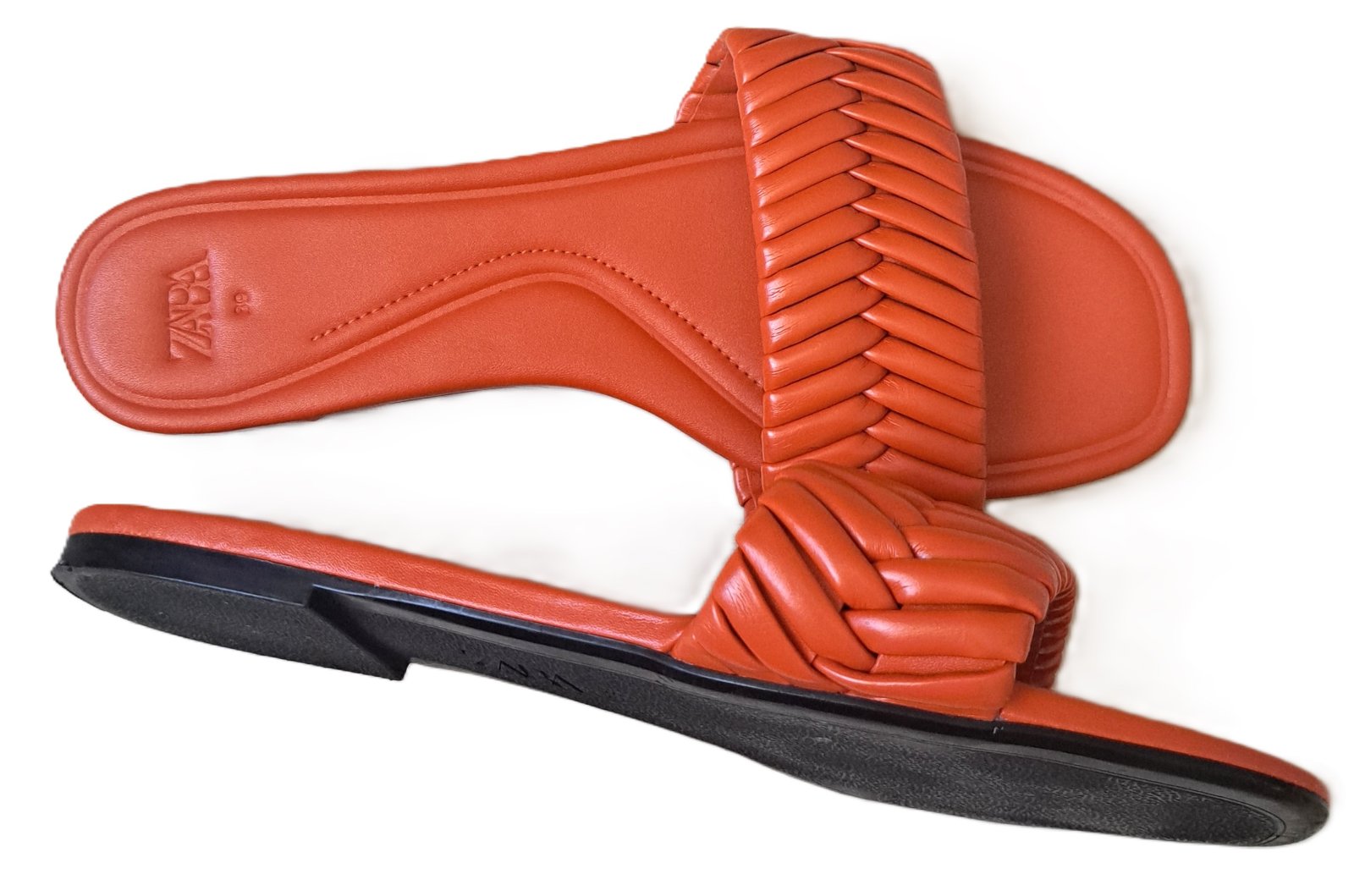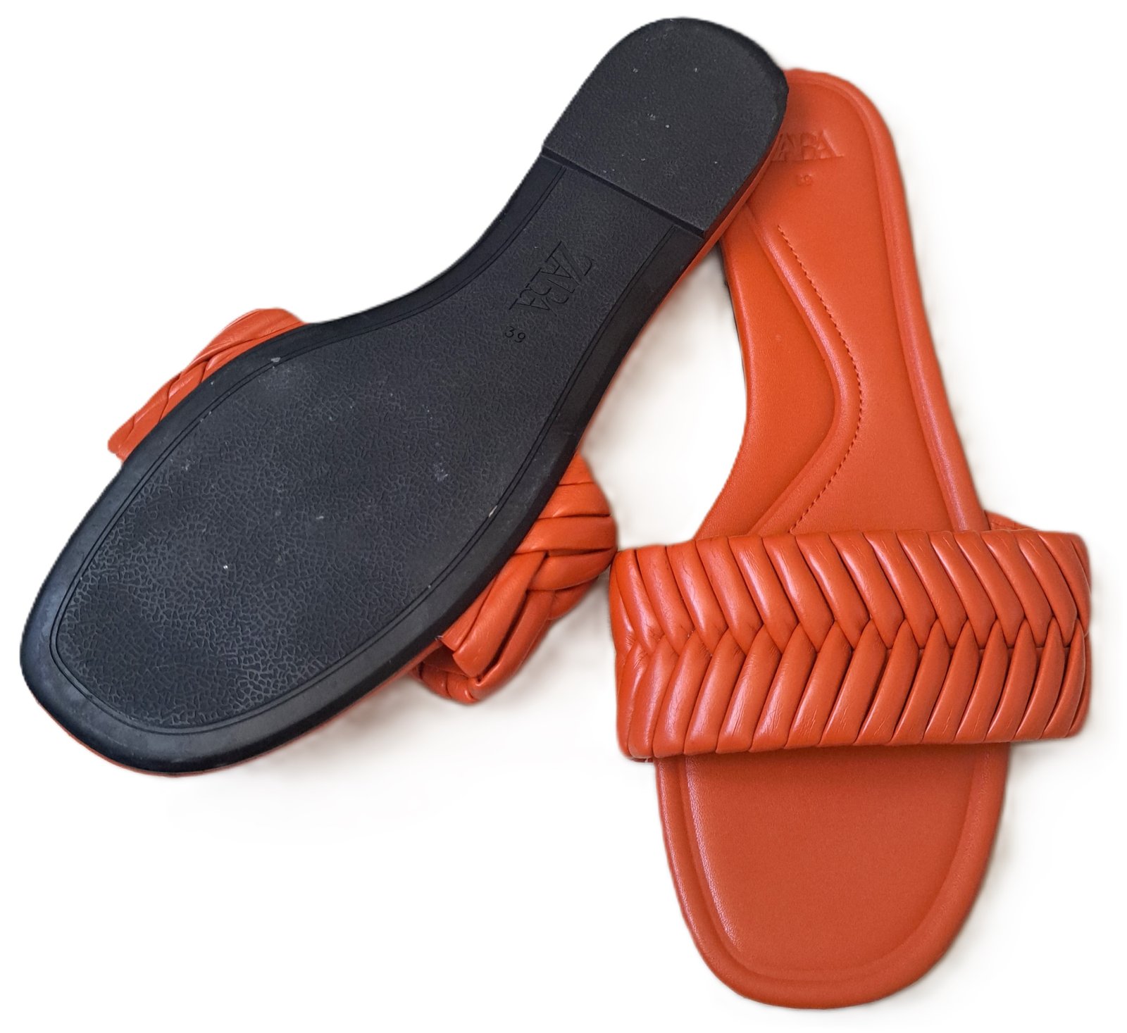 Dámske šľapky zn. Zara - obuté boli 1x iba v interiéri, sú ako nové. Veľkosť je uvedená 39, čo aj zodpovedá. Vnútorná dĺžka úplne na doraz je 25,5 cm, vnútorná dĺžka stielky podľa prešitia je 24,5 cm. Zo spodu prepletenej časti sa trochu odliepala tá spevnená časť, no dala som to opraviť obuvníkovi, takže sú v 100% stave. Na predaj je aj blúzka a kraťasy z poslednej foto.