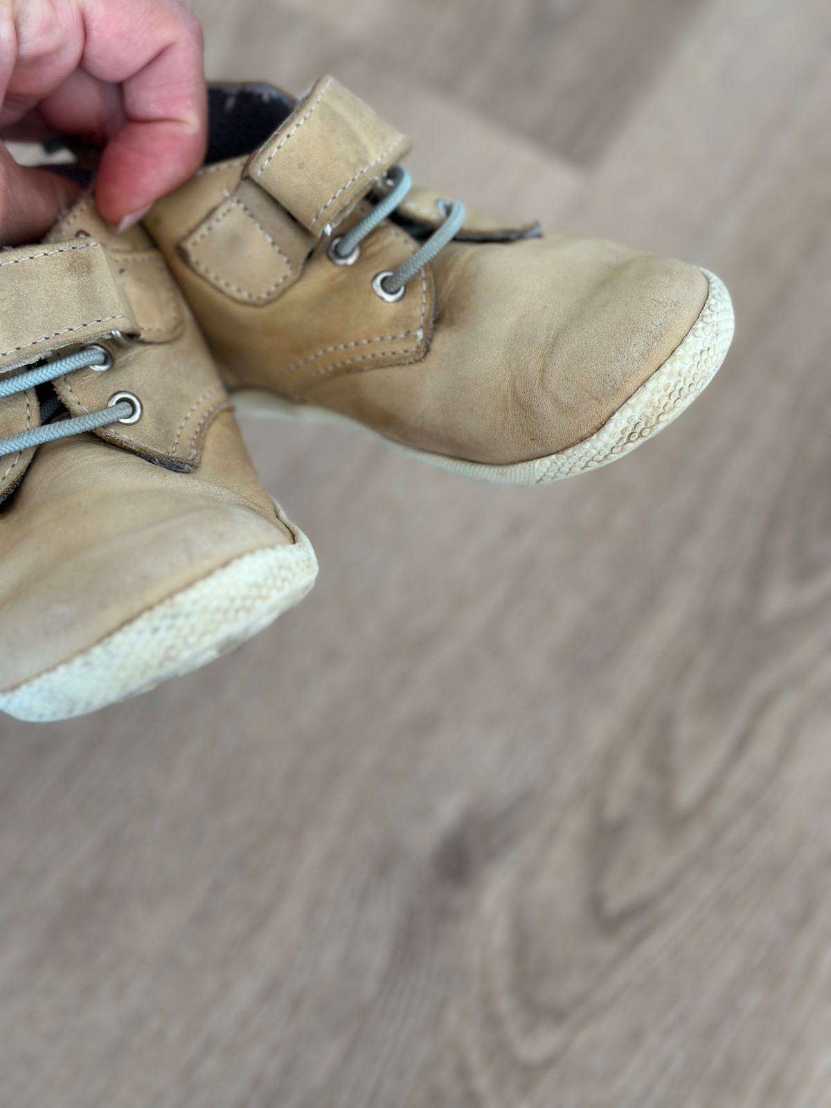 Kožené topánočky, zvrchu trochu ošuchané, ale iba estetická chyba, žiadne diery, podrážky nezodrané, nevyšľapané, suché zipsy pekne držia. Alternatíva barefoot, ľahké, makké, ohybné. Na fotkách neo...