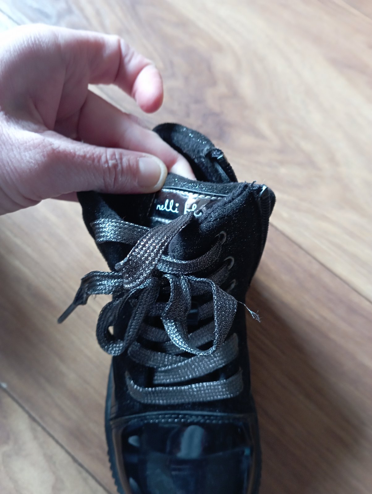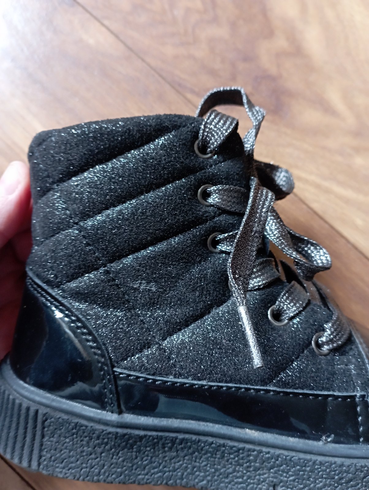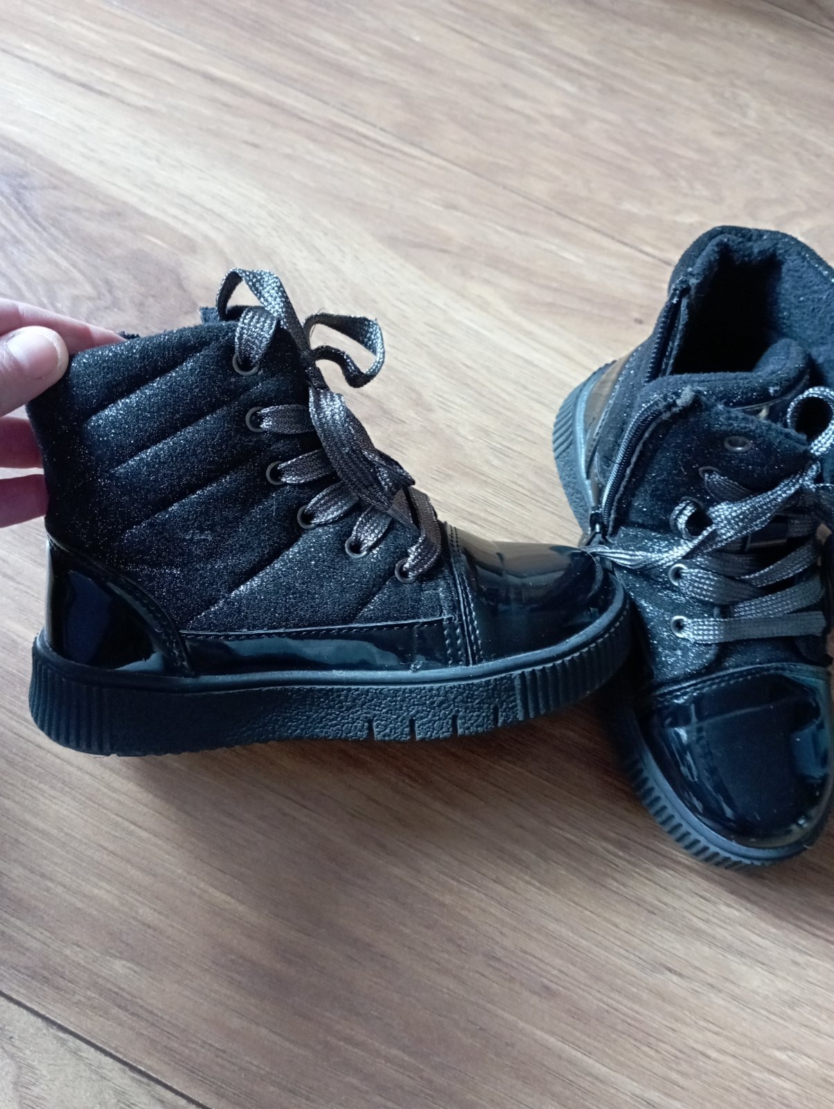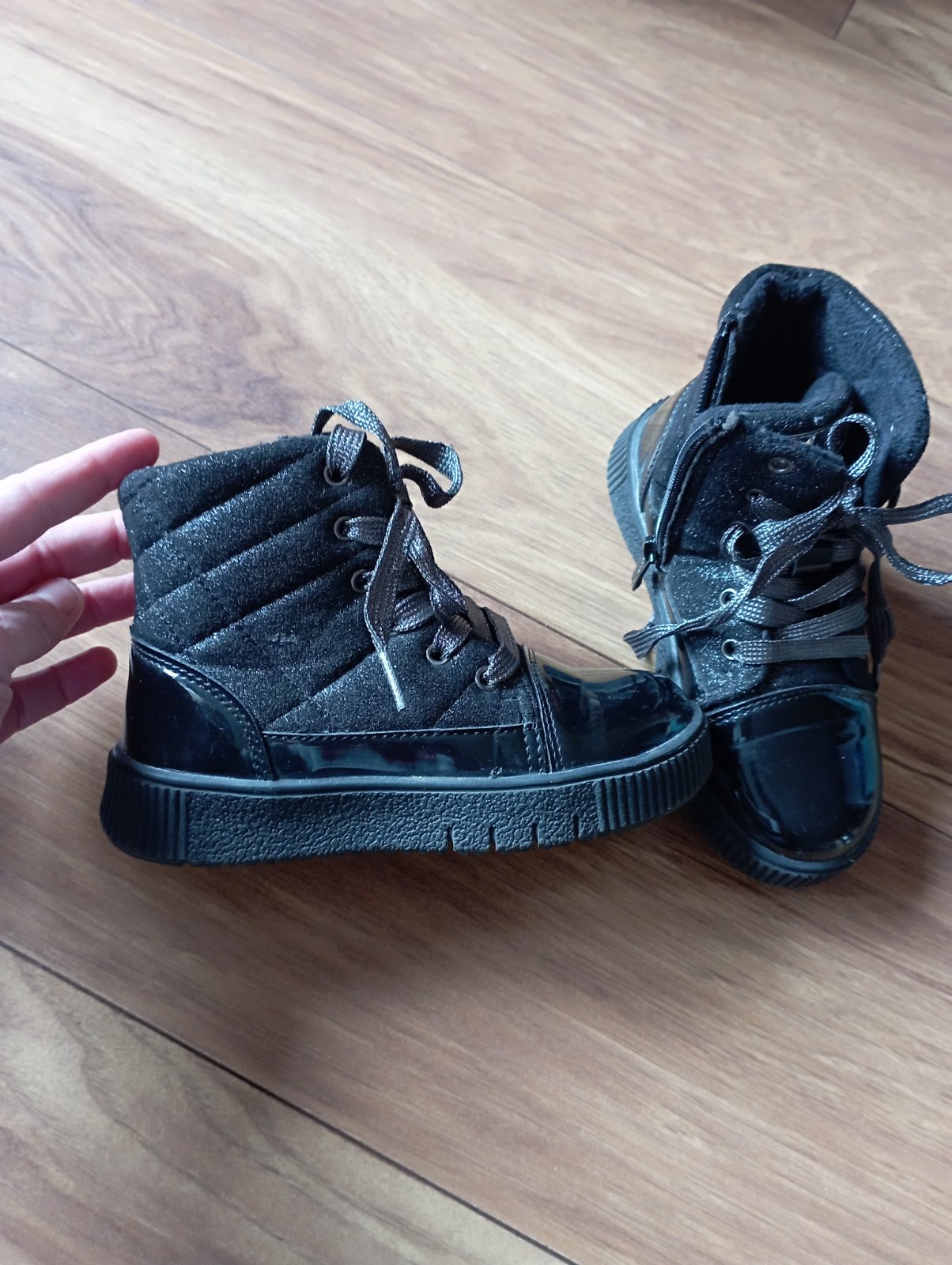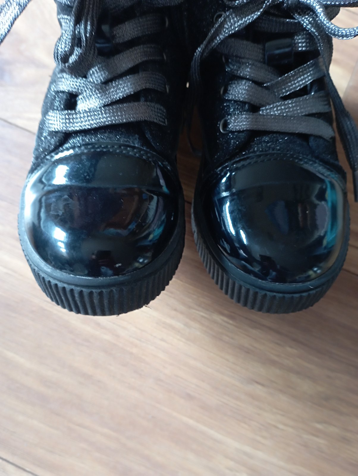 Pekné topánočky mix látka a lakovky,postriebrenesu kde je látková časť nevidno dobré aj šnúrky ,podsite na jar,jeseň a kľudne teplú zimu ,nosené na striedačku top stav