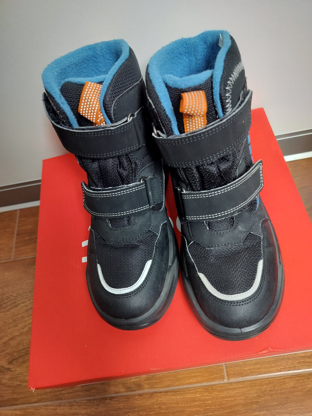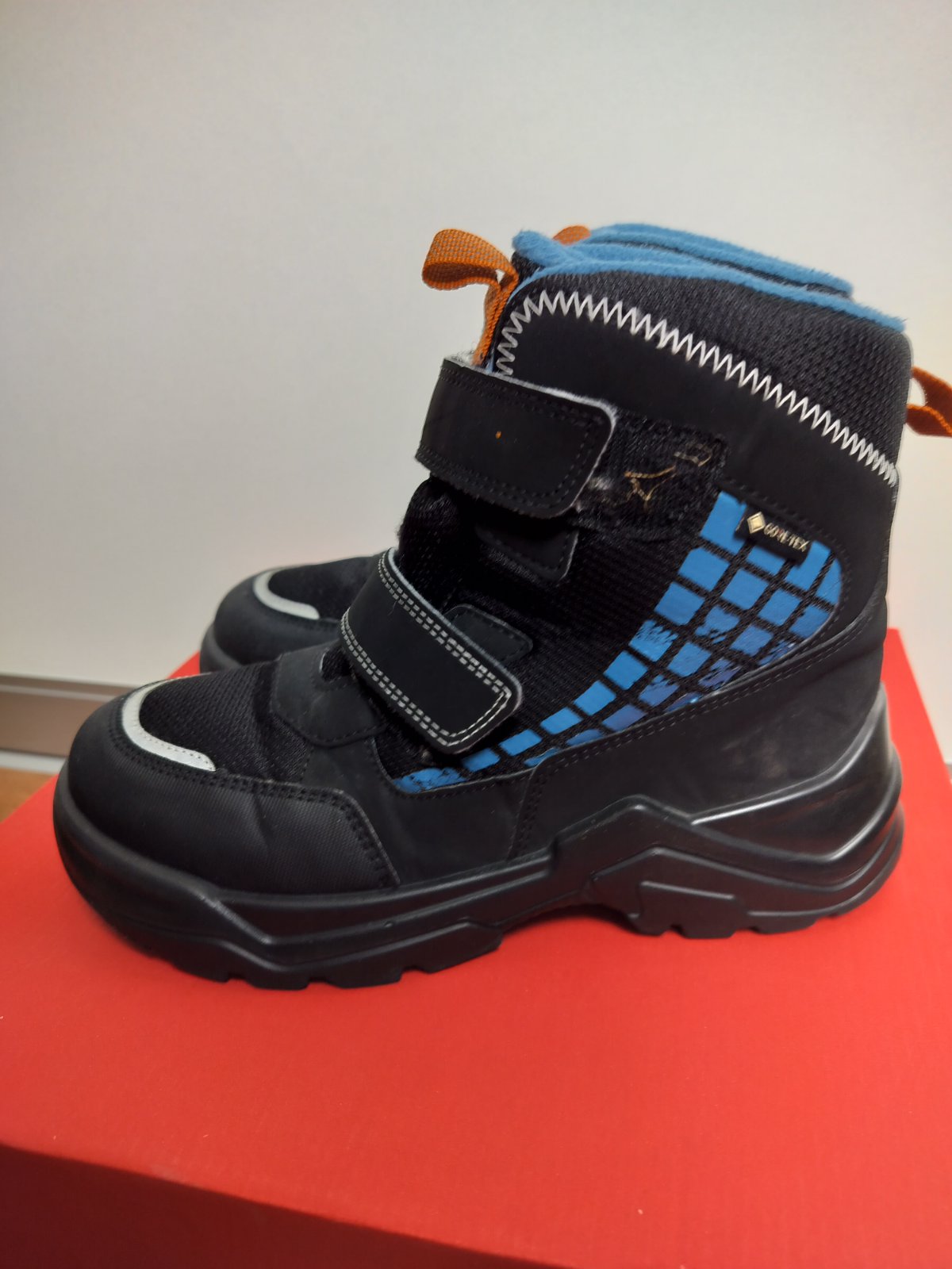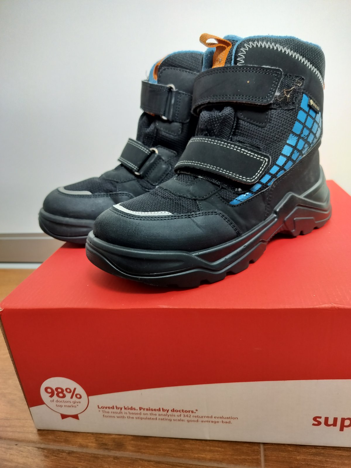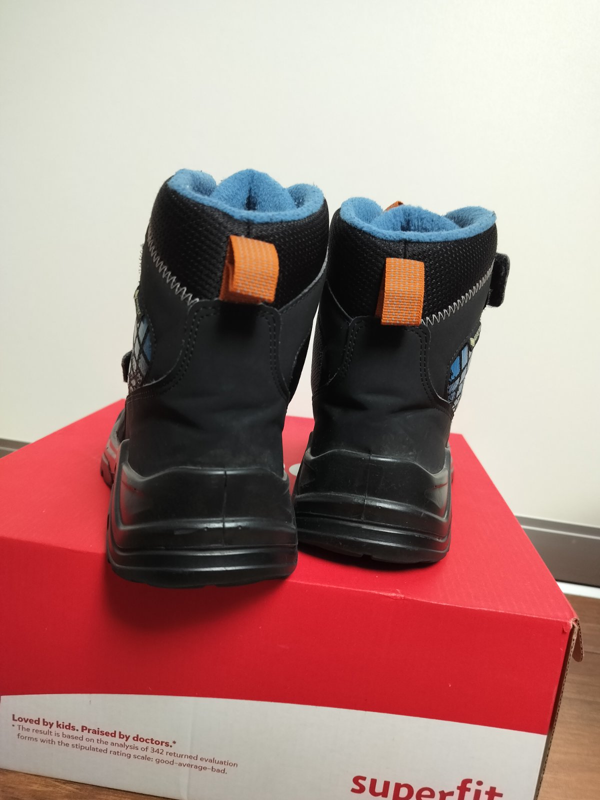 Predám čižmy Superfit, nezatekaju sú perfektné na zimu. Zvonku čo je ozdobný lem tak popraskal, čo nemá na funkčnosť vôbec žiadny vplyv a nie je to ani vidieť, keď si dá dieťatko nohavice na topánk...
