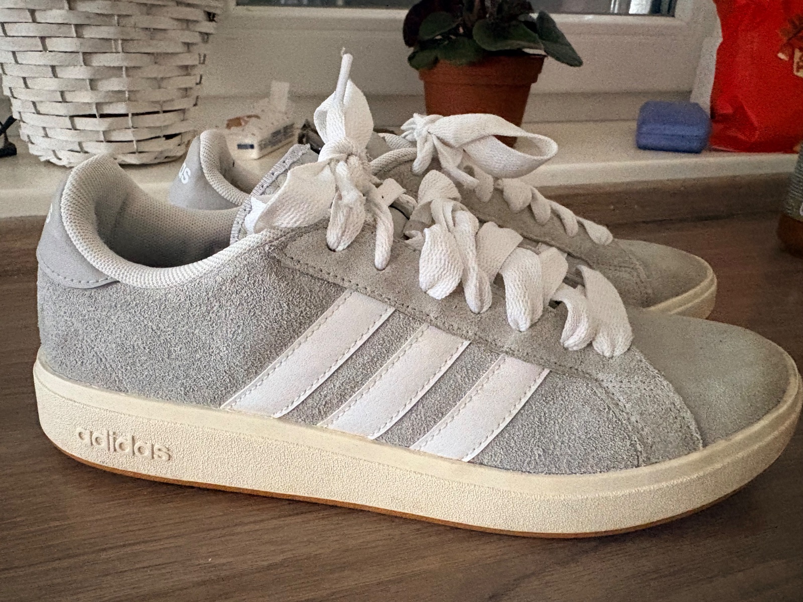 Predam tenisky Adidas, velkost cislo 41 1/3. Dĺžka vnútornej vlozky je 26,4 cm. Podrazky ani vnutro nie su predrate. Par oderkov je na vnutornej strane tenisiek - pozrite foto. Cena 15 eur