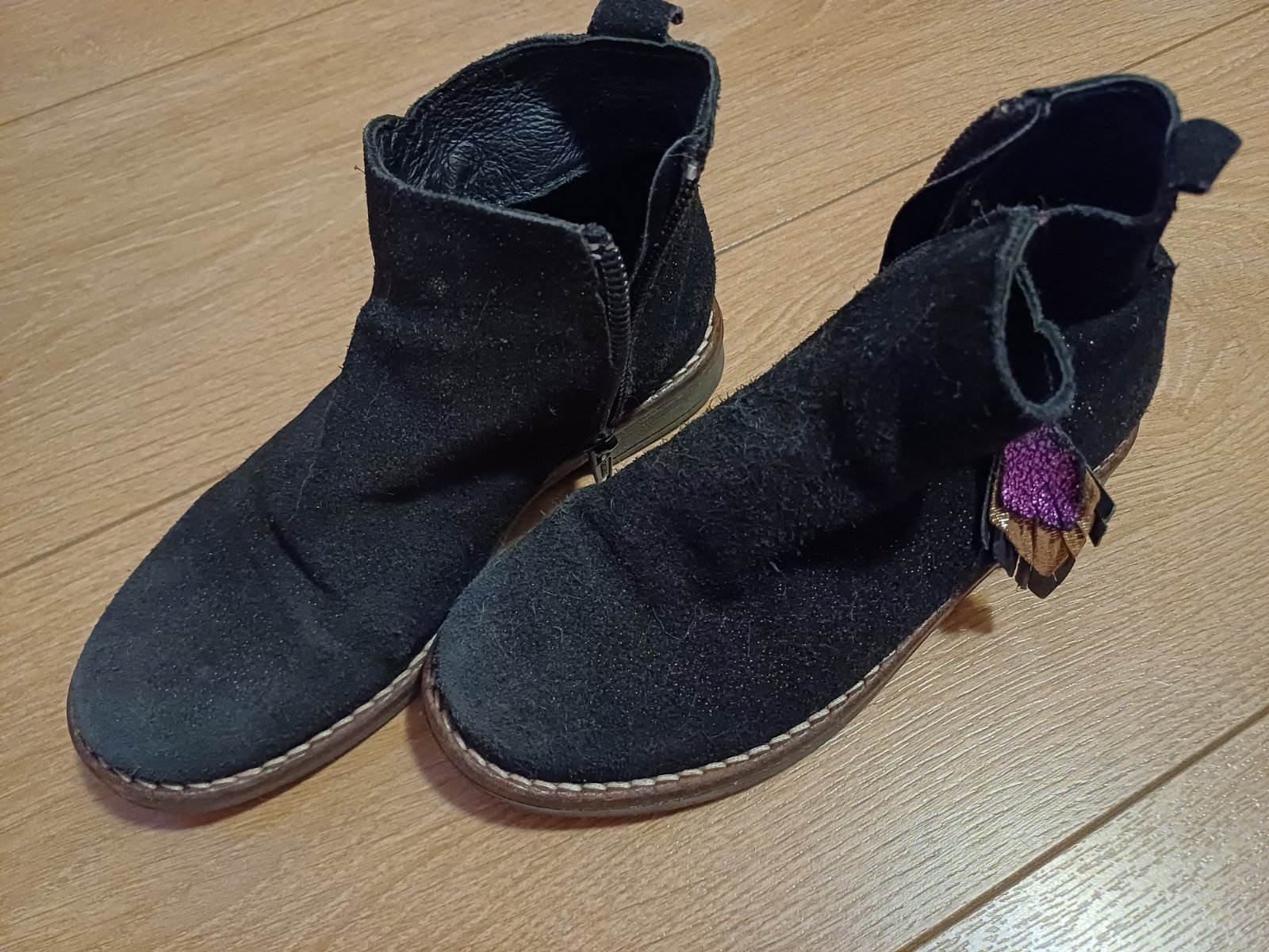 Výborne teple a pohodlne čižmy, nosili sme len občas - do mesta. Vpredu je lem trochu rozstrapkany- snažila som sa odfotiť