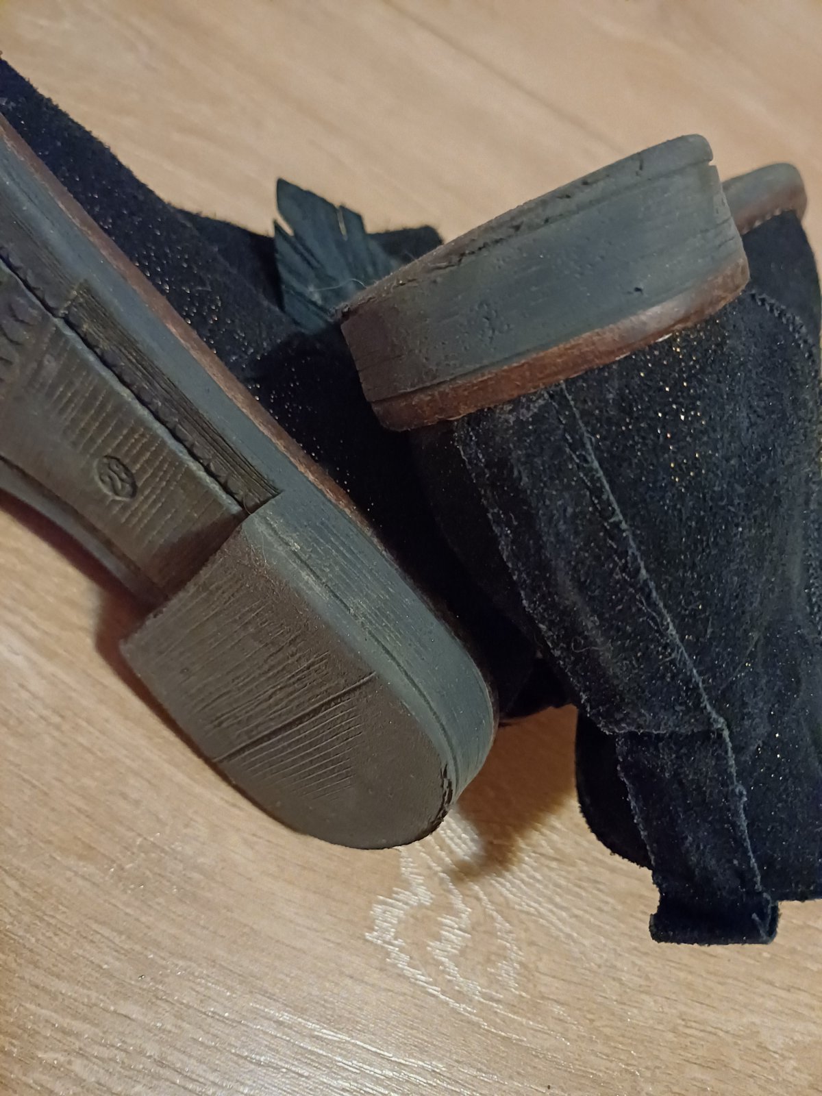 Nízke trblietavé čižmy z brusenej koze č. 28