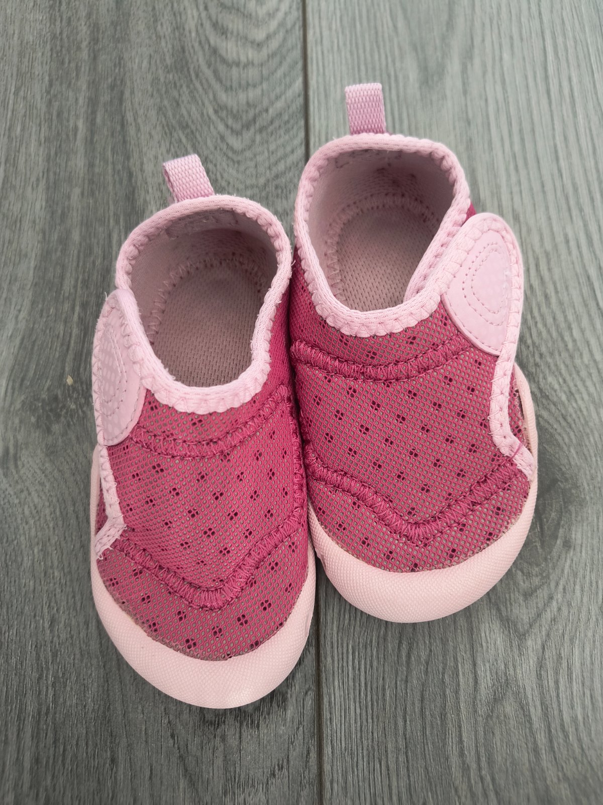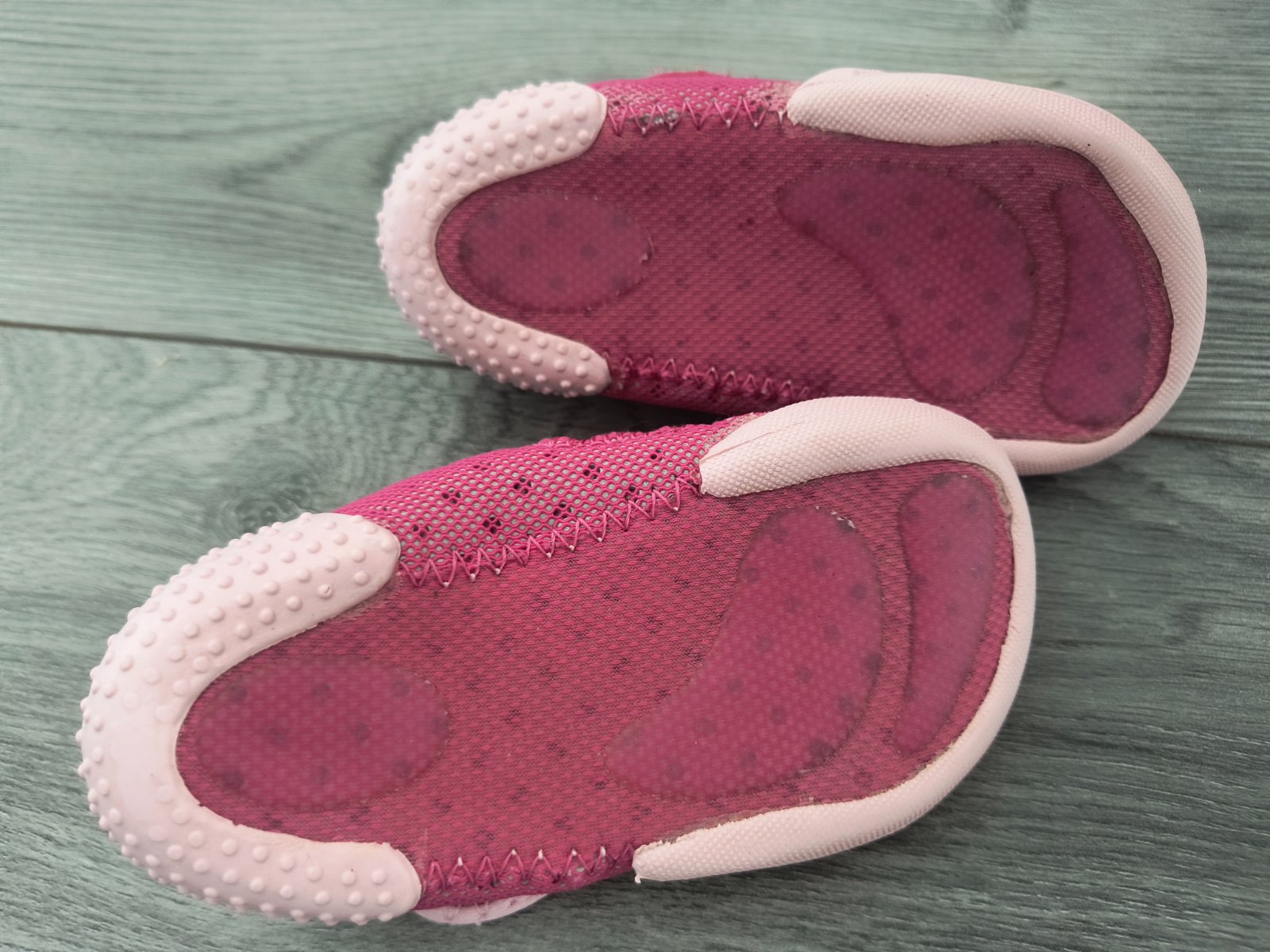 Detska obuv na cvicenie, ale posluzia aj ako prezuvky do skolky, pripadne ku vode. Stitok je odstrihnuty, ale velkost zodpoveda cislu 25, vnutorna dlzka je cca 15-15,3cm. Su bez poskodeni, v slusno...