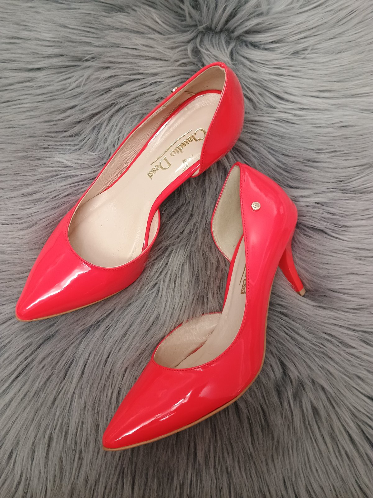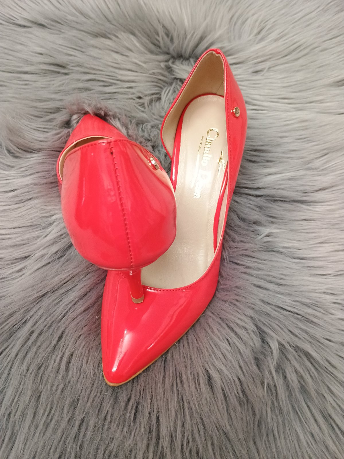 Dámske kožené lodičky na opätku 7,5 cm vysokom. Pôvodná cena 55,90 eur.