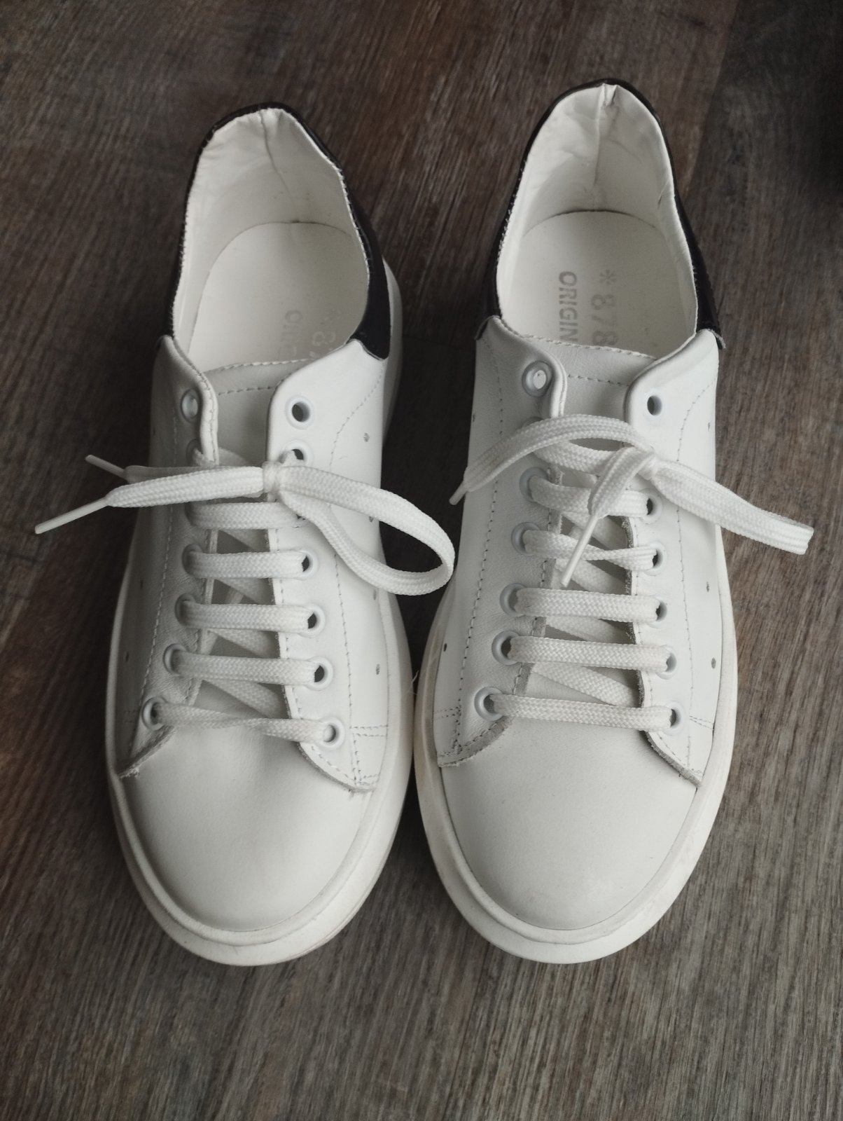 Biele kožené tenisky, jedenkrát obuté, mäkké a pohodlné, bez poškodení, možný aj osobný odber HC, TT.