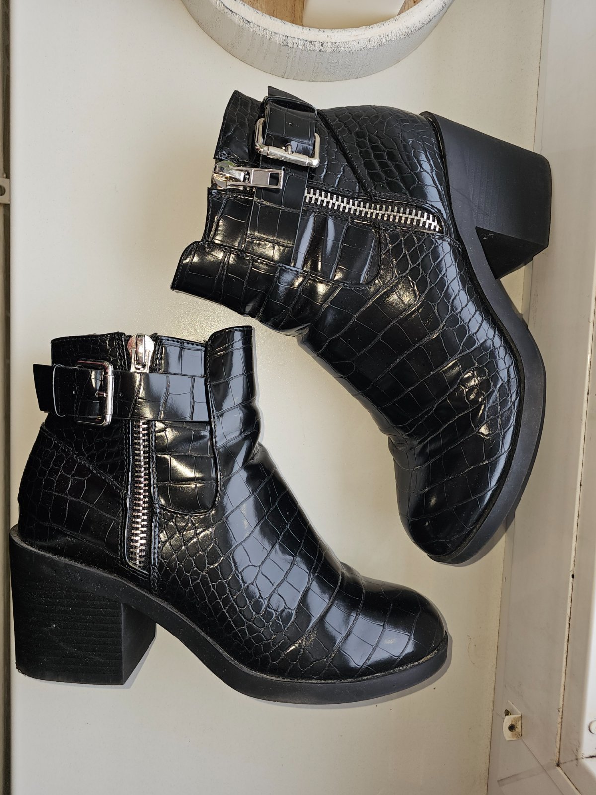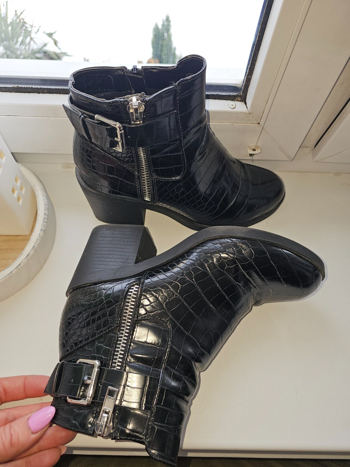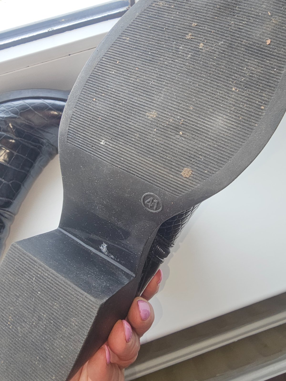 Boli obuté párkrát a už mi len stoja v skrini, preto posúvam ďalej. Chybičky-aj napriek minimálnemu noseniu, bude potrebné vymeniť opätky, vid foto. Na jednom zapínani trocha osuchana farba na zips...