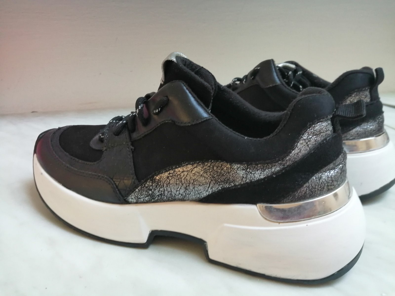 Dievčenské botasky cierno bielo strieborne vo vynikajucom stave