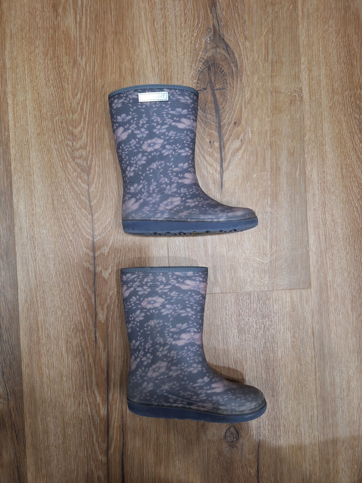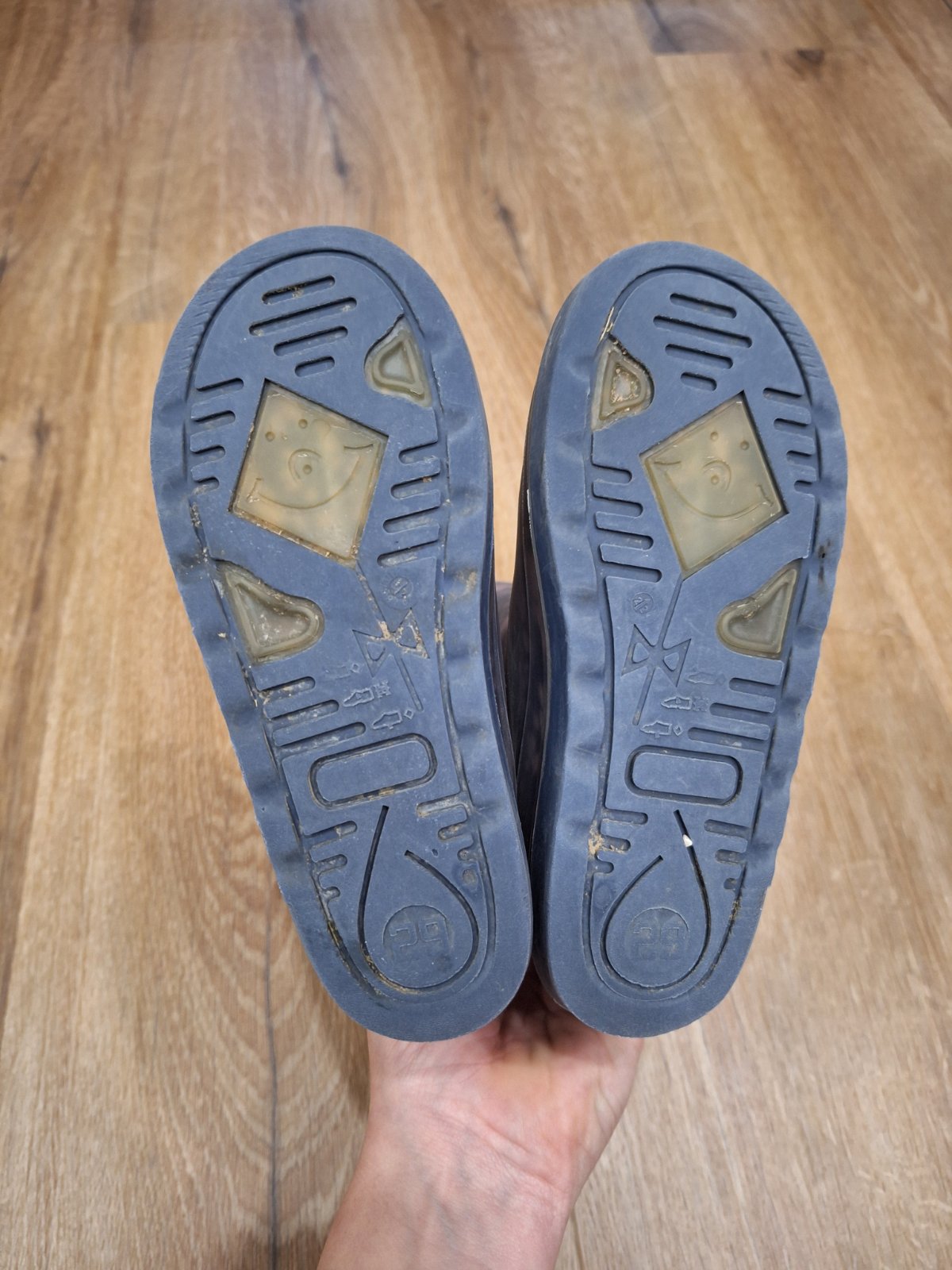 Trochu zateplené gumáky ideálne na jar/jeseň. Stratili sme jednu šnúrku kdesi v škôlke, cena tomu prispôsobená.