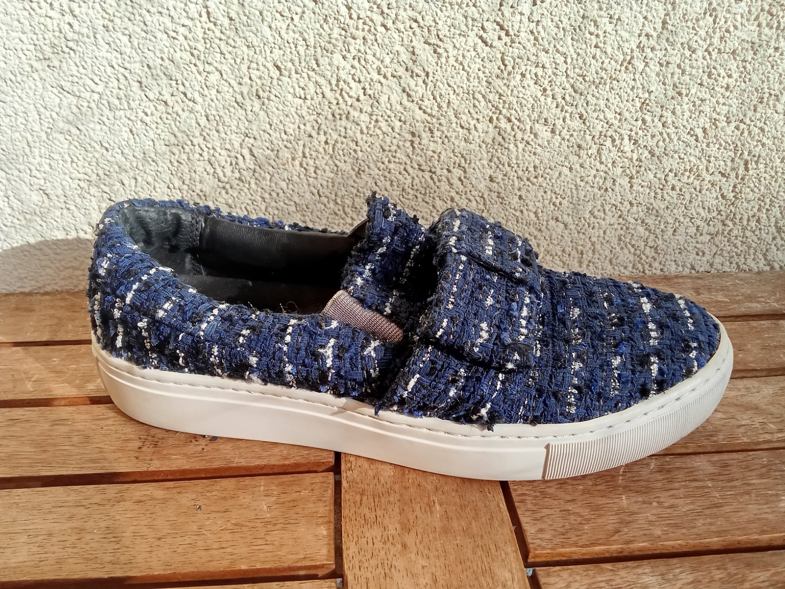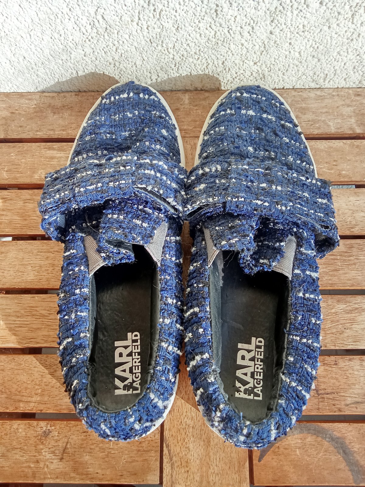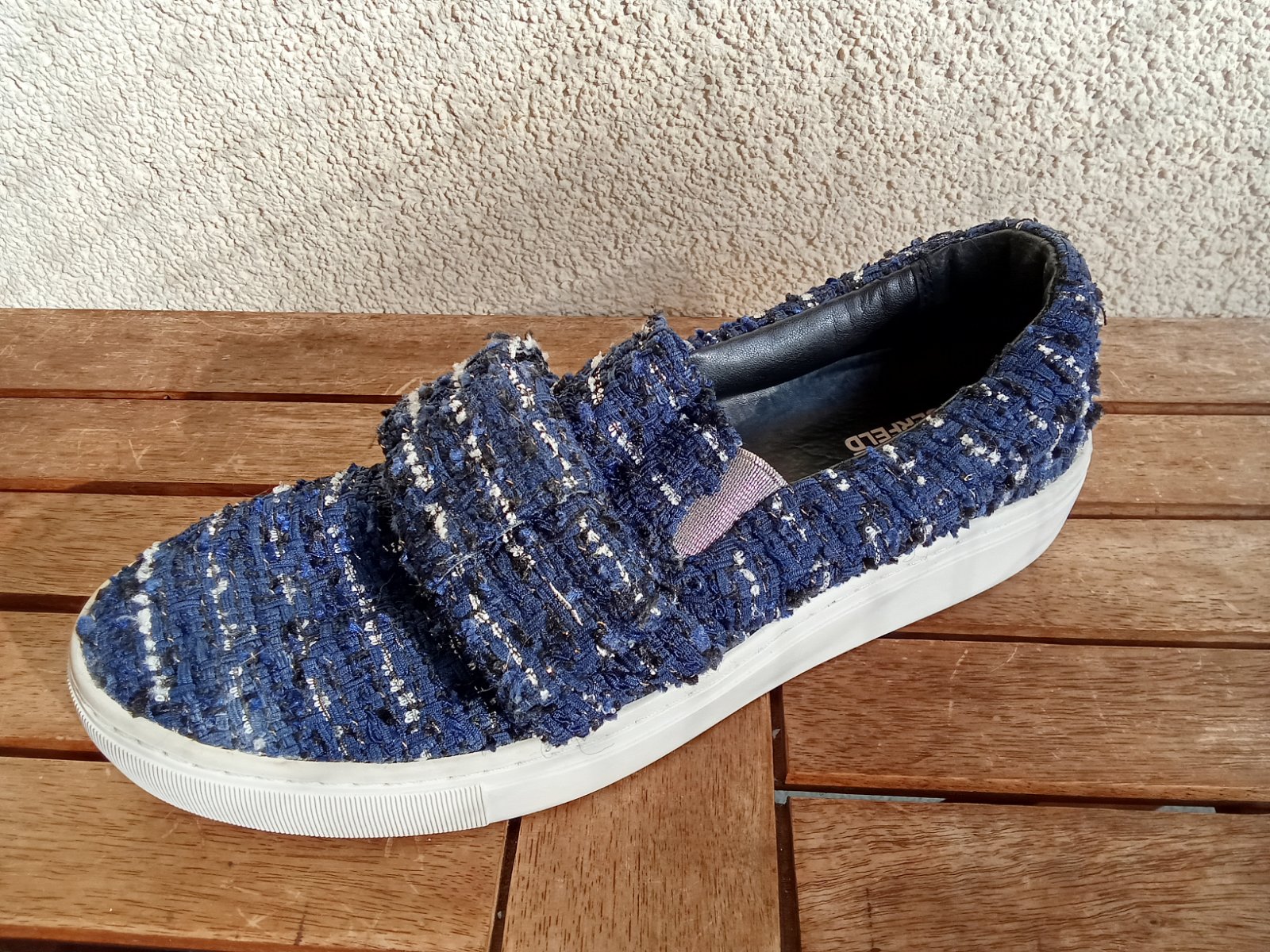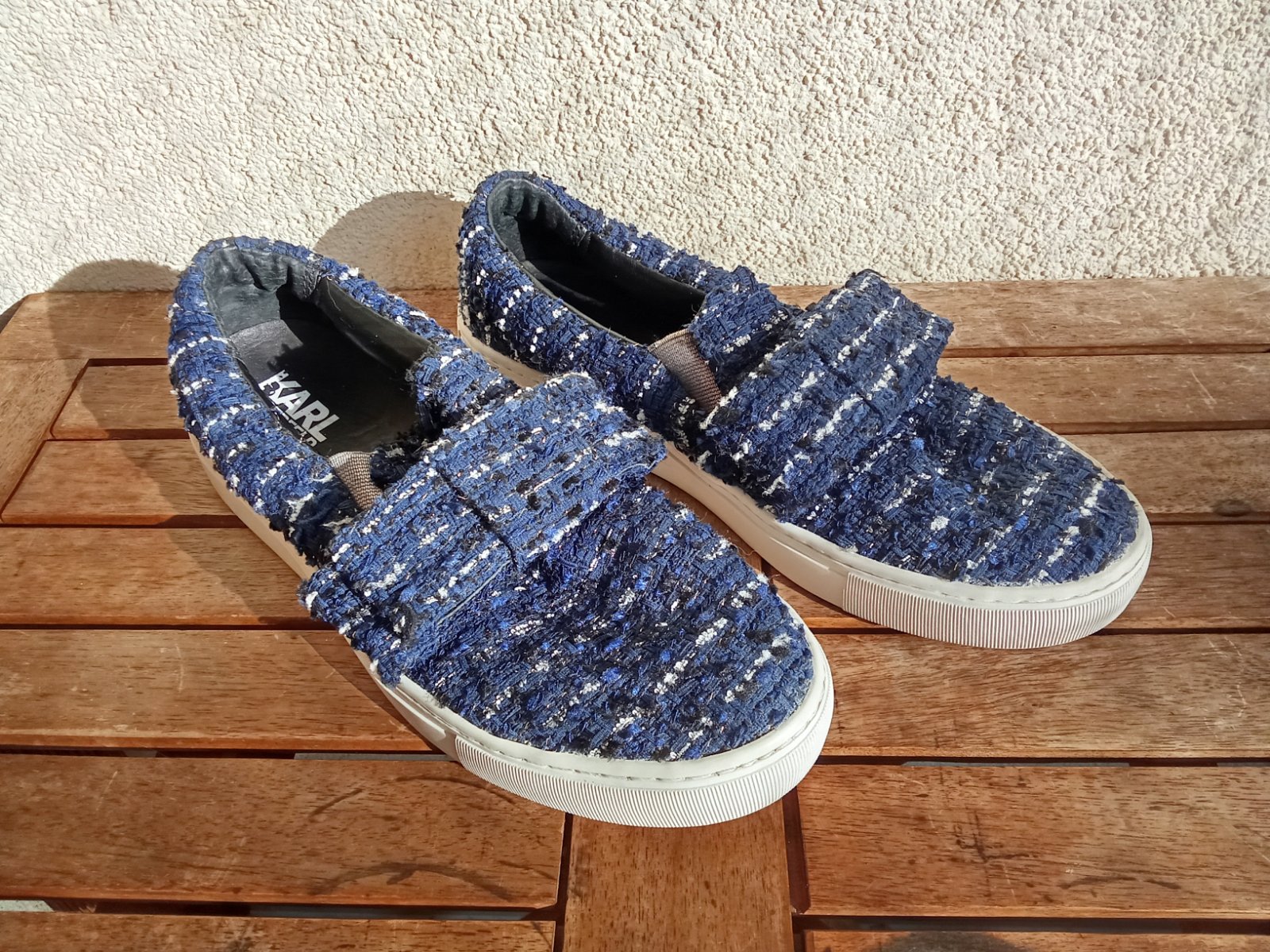 Predám krátko nosené topánky značky Karl Lagerfeld v tmavomodrej farby na suchý zips.