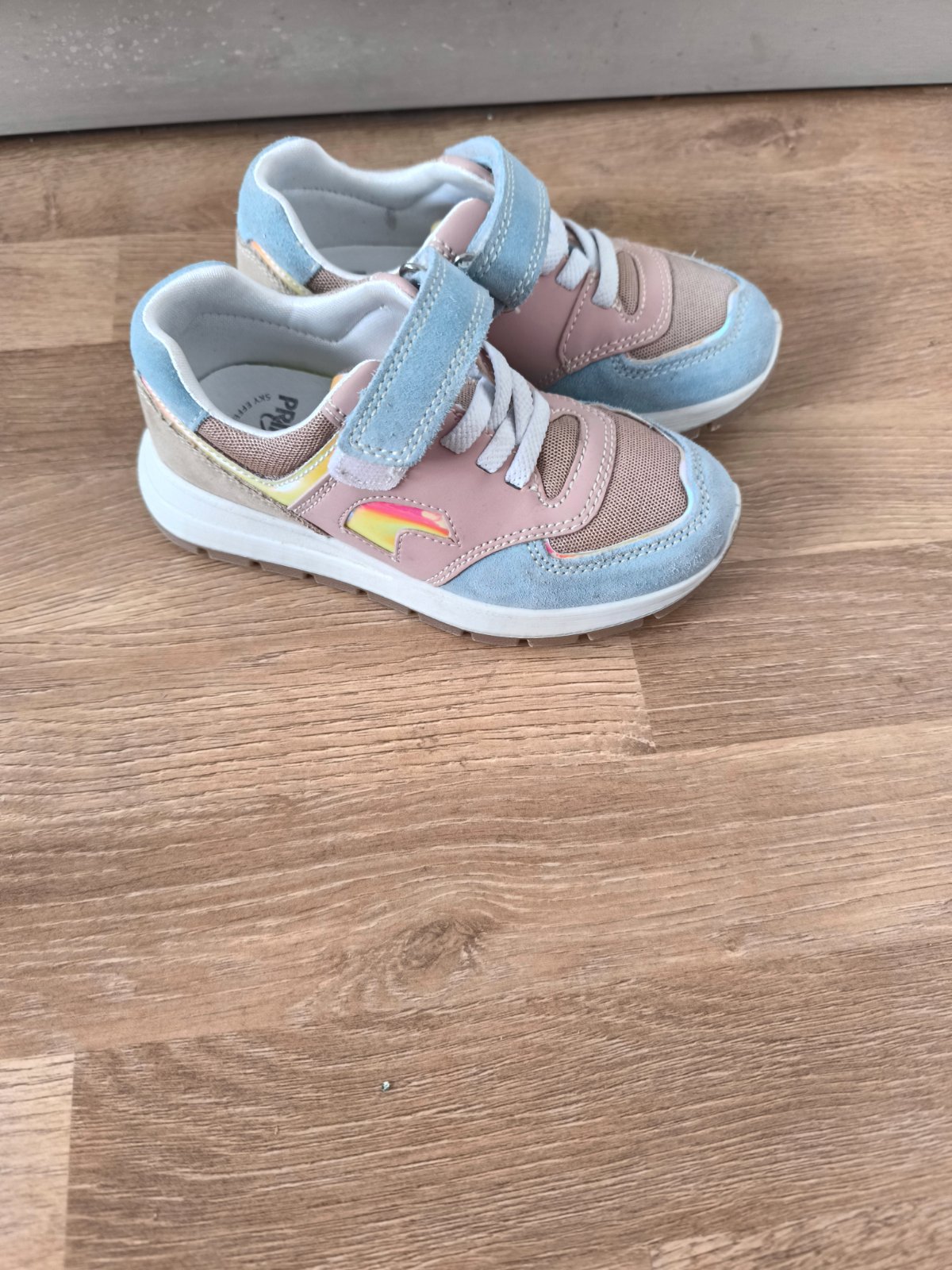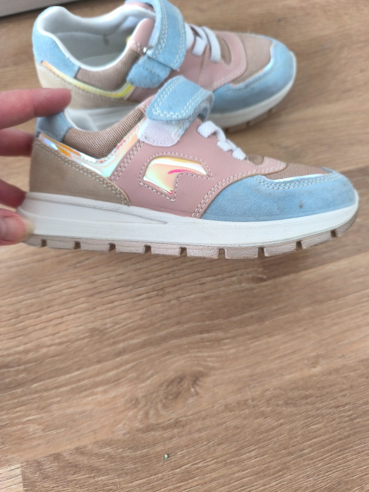 Krásne tenisky. Vnútro celokozene, vrch kombinácia koža a textil. Lepky držia výborne. Dobrý stav, na lesklých častiach vidno suchnutia. Vnútorná vložka 18 CM.