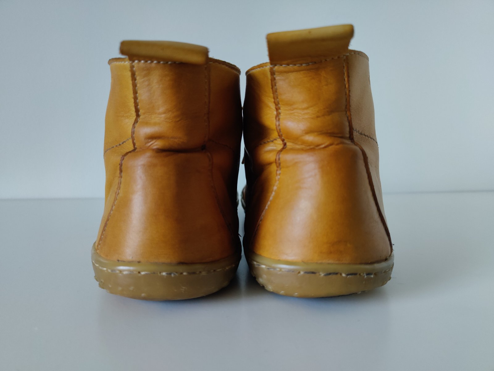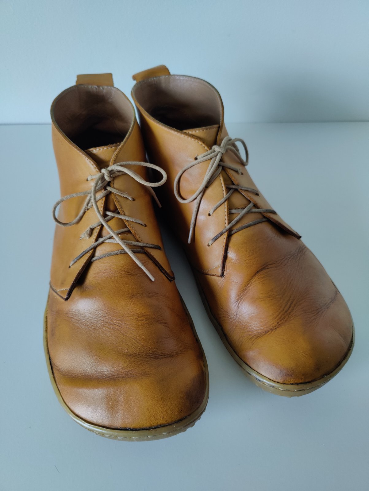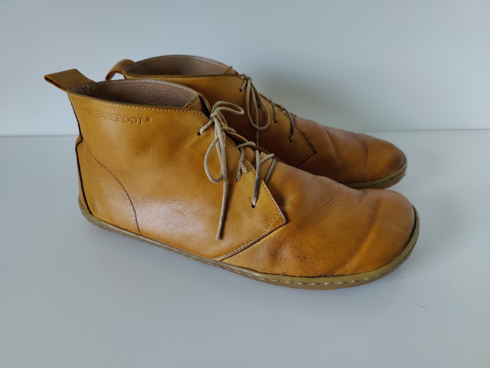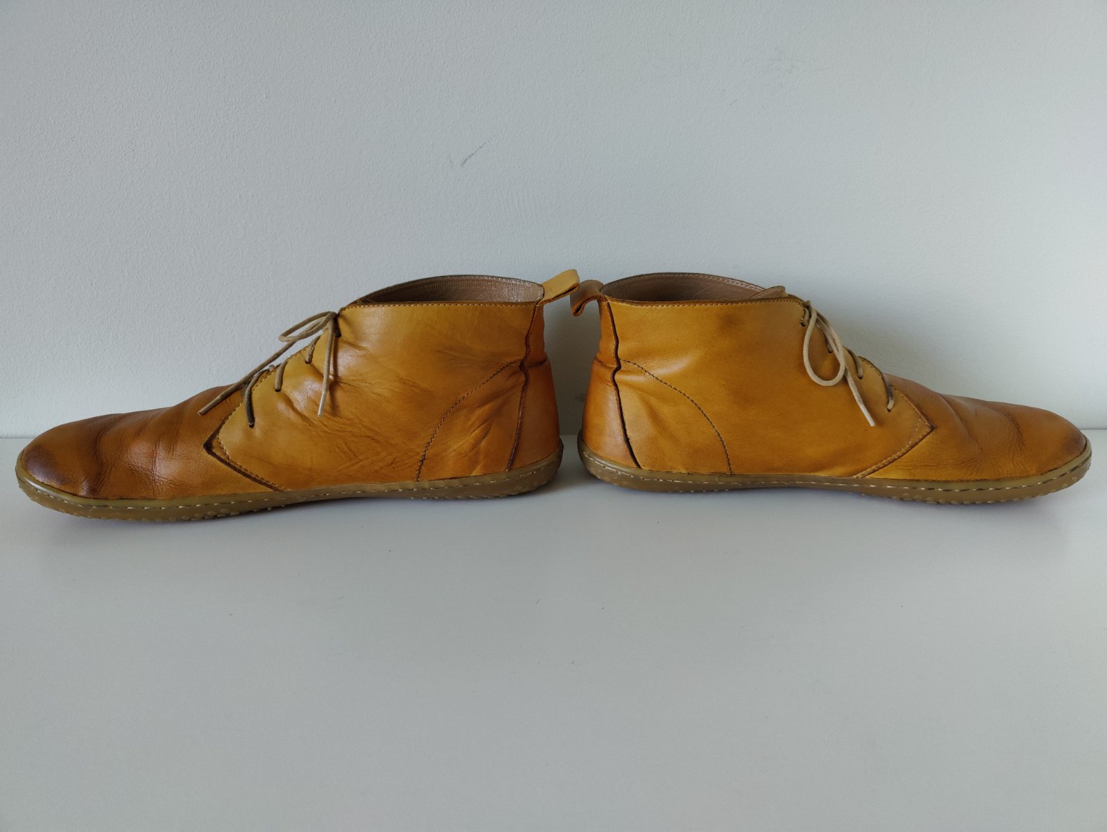 Predám dámske celokožené barefoot celoročky českej značky OKbarefoot. Veľkosť 42, vnútorná dĺžka 27,5 cm, vnútorná šírka 9,6 cm. Farba okrovo žltá. Kvalitná koža. Sú intenzívne nosené, na pohľad stále pekné, akurát potrebujú opraviť/vymeniť podrážky, prípadne aj vymeniť šnúrky. Skúšala som to sama lepidlom na podrážky, ale chcelo by to asi odborníka. Verím, že po oprave ešte dlho poslúžia. Cena prispôsobená stavu.