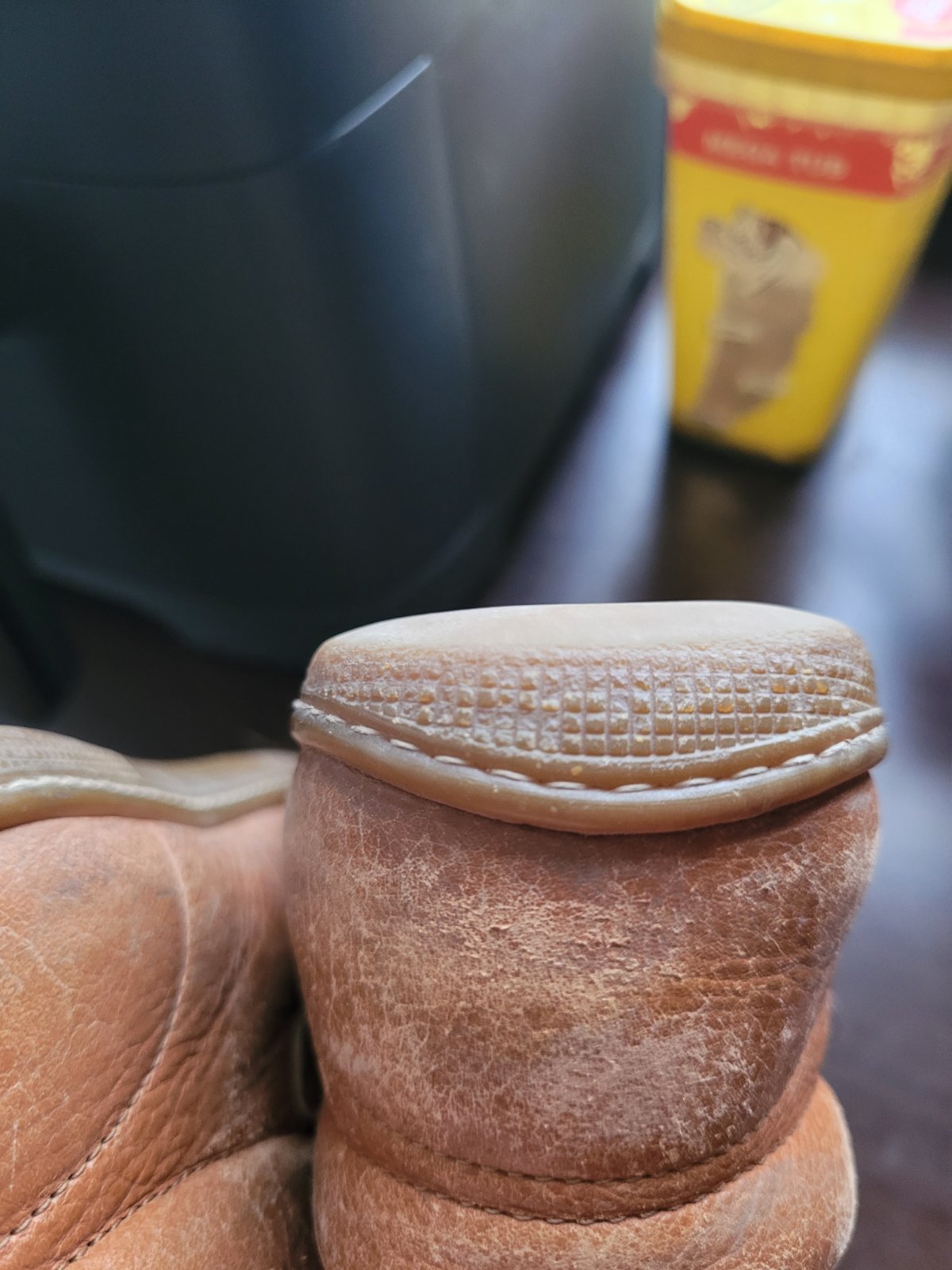 Nosene. Farba výrazne osuchana, päty osuchane-povrchovo, inak bez poškodení