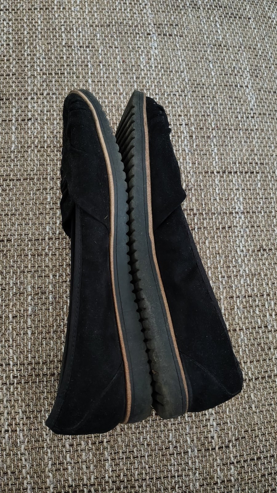Predam malokrat obute dámske baleriny. Su vo velmi krasnom zachovalom stave, okrem jednej chybicky. Na lavej vpredu male suchnutie /vid. fotku/.