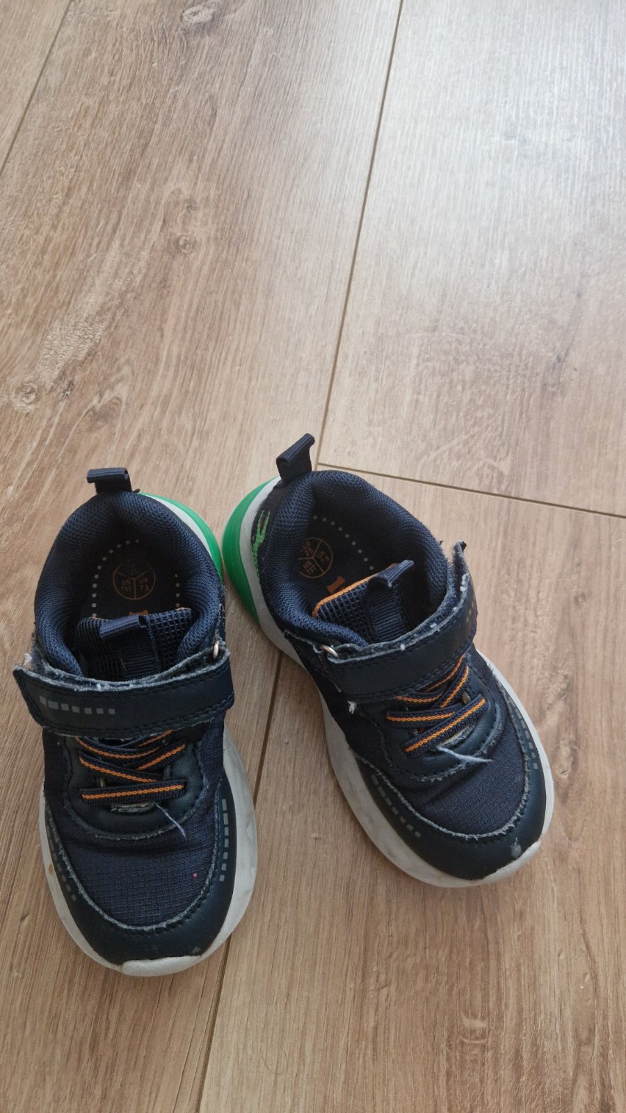 Párkrát obuté tenisky značky lupilu, blikajúce, funkčné. Na špičkách popukana guma. Vnútorná dĺžka cca 15,5 cm.