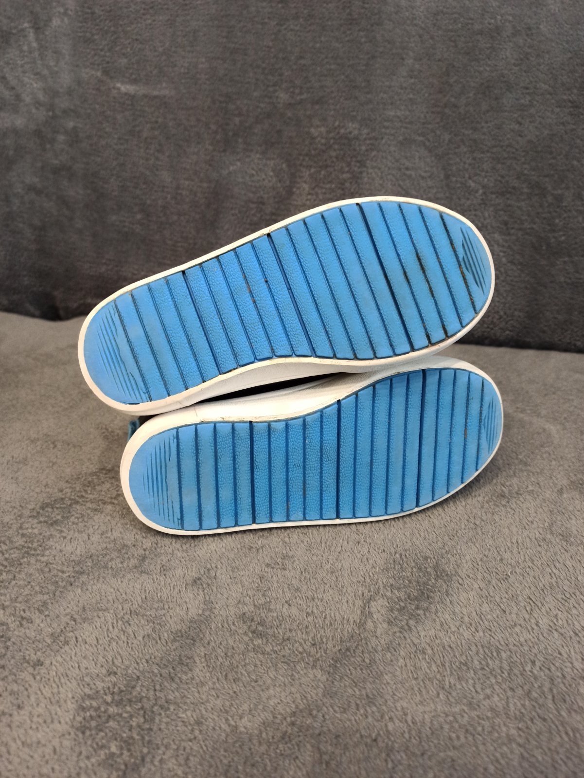 Pekný zachovalý stav. Vnútorná dĺžka 17,5cm. Vo vnútri, zo zadu mierne sa ošúpalo. Aj z vonku na jednej topánočke, kuk foto. Ľahké, vzdušné, super na leto. Do škôlky ešte v pohode