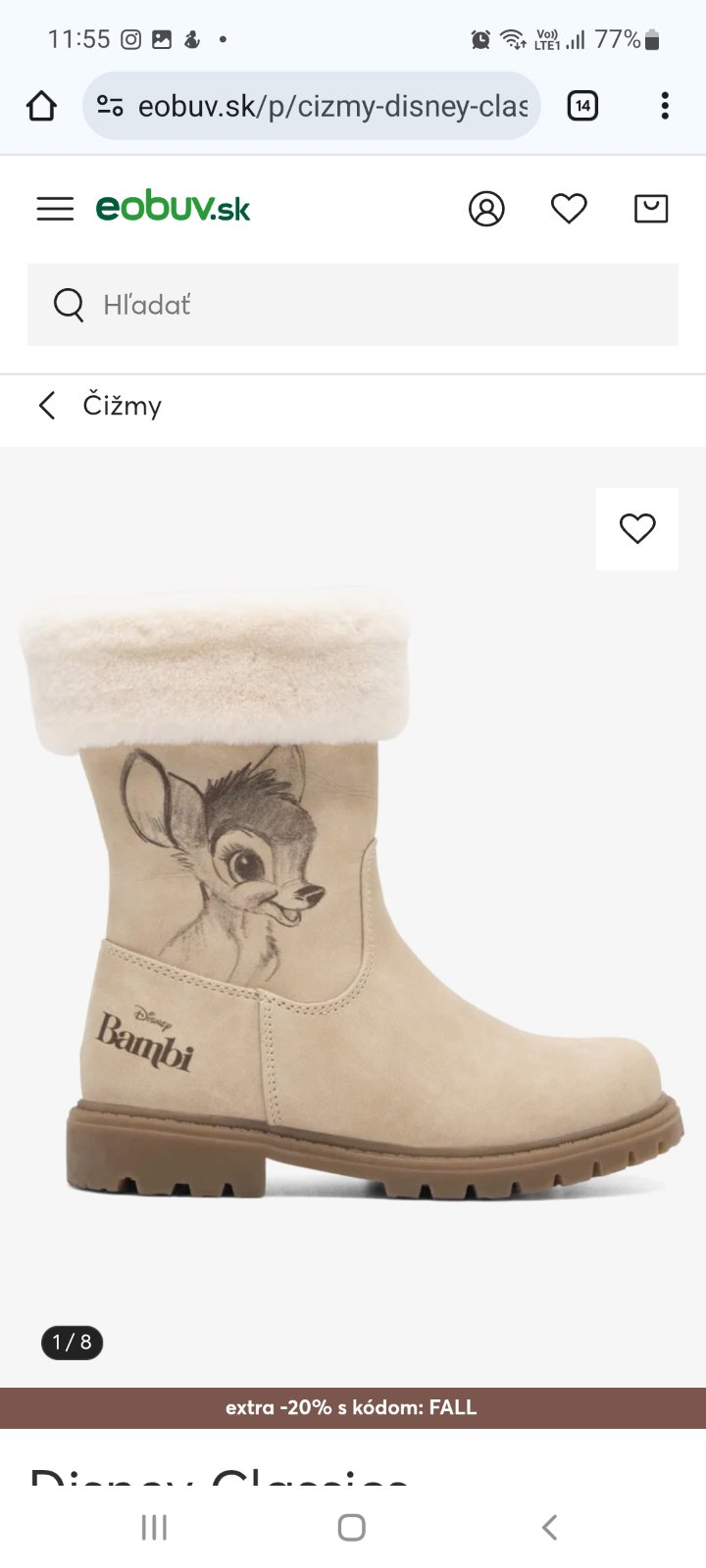 Predám čižmy Disney Bambi vo veľkosti 28, vnútorná dĺžka 16,5cm!!