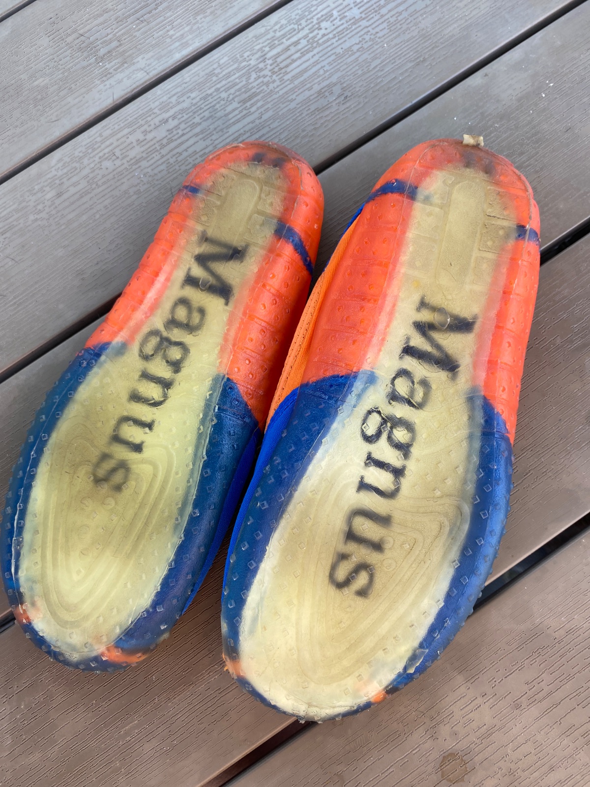 Nosene vrámci terapii do bazéna Na ľavej nohe navrhnutá guma,syn má širší nart a pri obuvani sa to navrhlo,no nebráni to funkčnosti Veľkosť 4