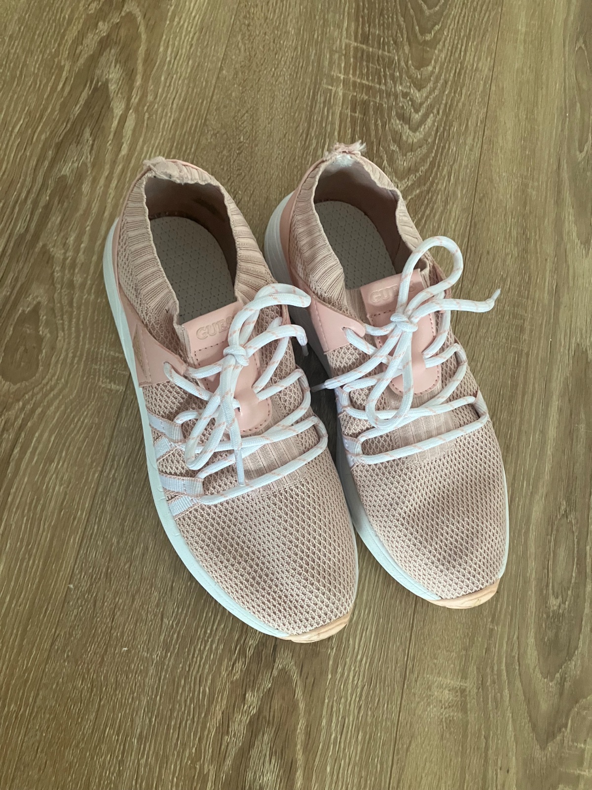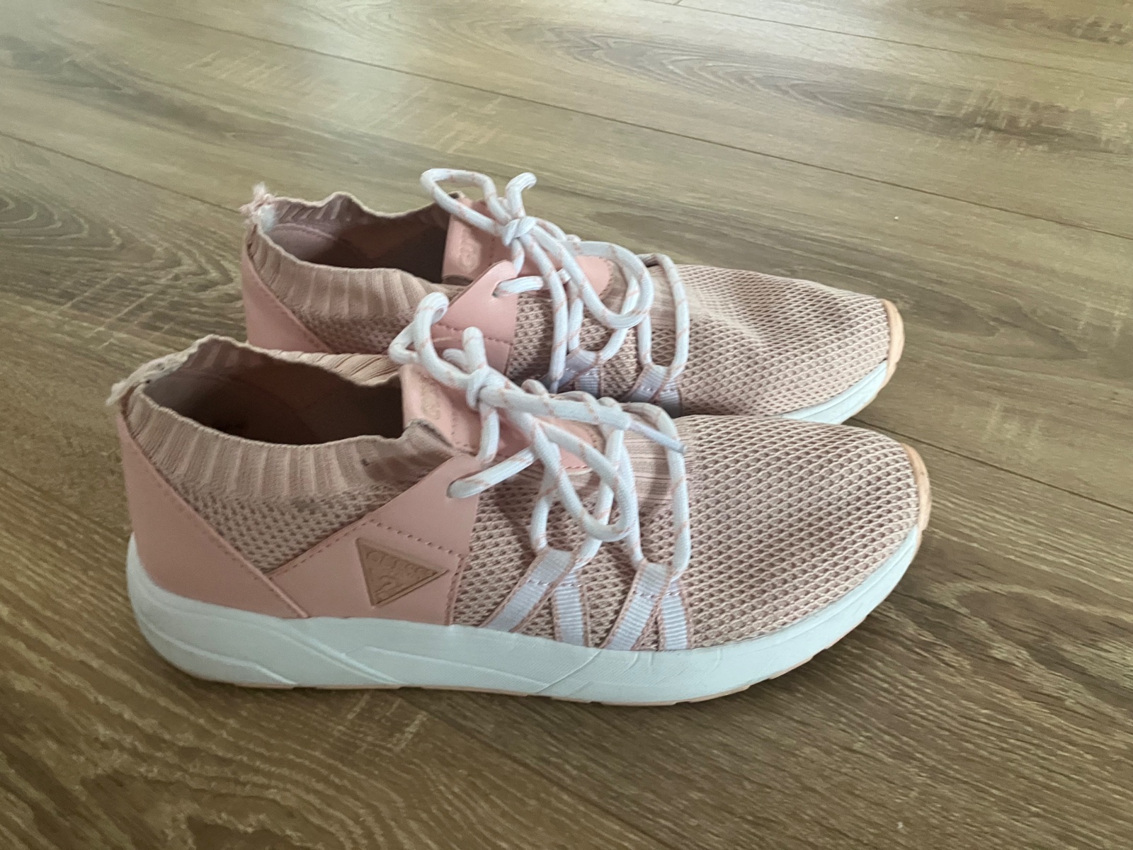 Predám tieto krásne a luxusné tenisky na platforme značky GUESS vo veľkosti 38. Pôvodne stáli 120 EUR. Tenisky boli párkrát nosené. Majú krásnu bledoružovú farbu popretkávanú striebornými niťkami. ...