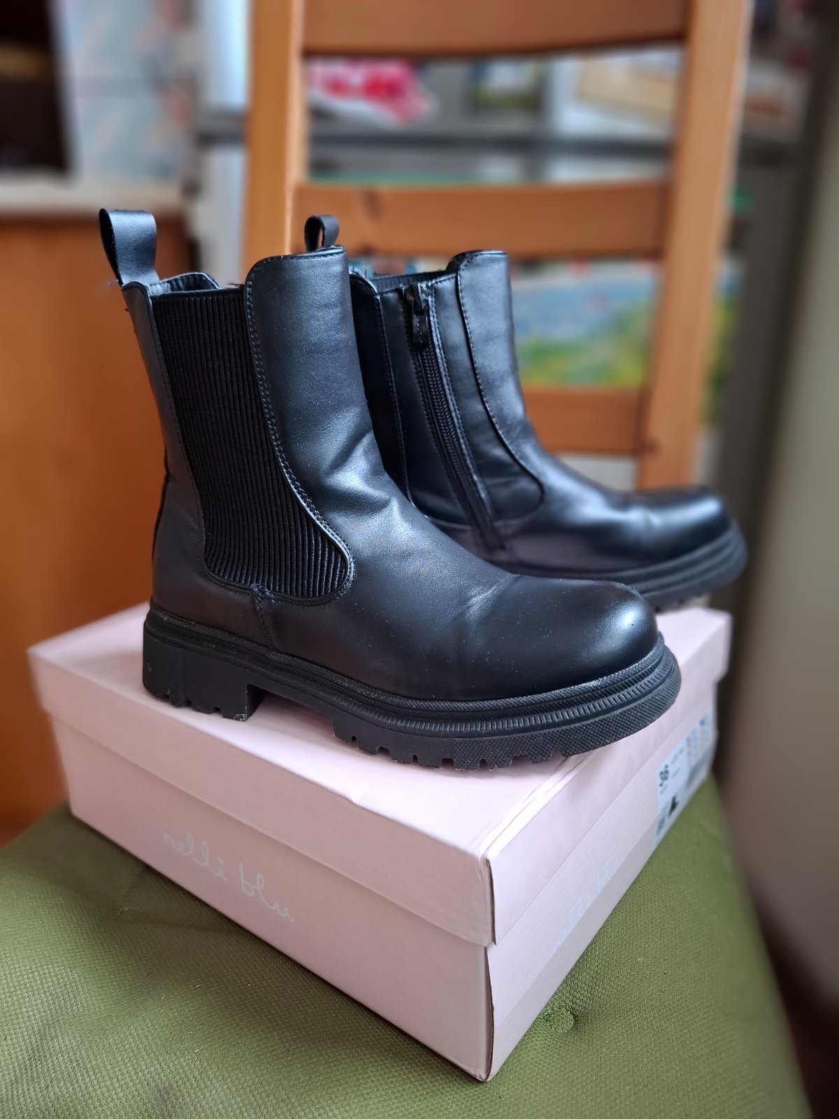 Predám krásne prechodné čižmižky po dcére. Boli kupované v kamennej predajni v BA ani nie pred rokom. Dcéra z nich rýchlo vyrástla. Značka Nelli Blu (predajňa CCC), čierna farba, veľkosť 36. Priložím aj pokladničný doklad, do 18.11.2026 sú ešte v záruke.