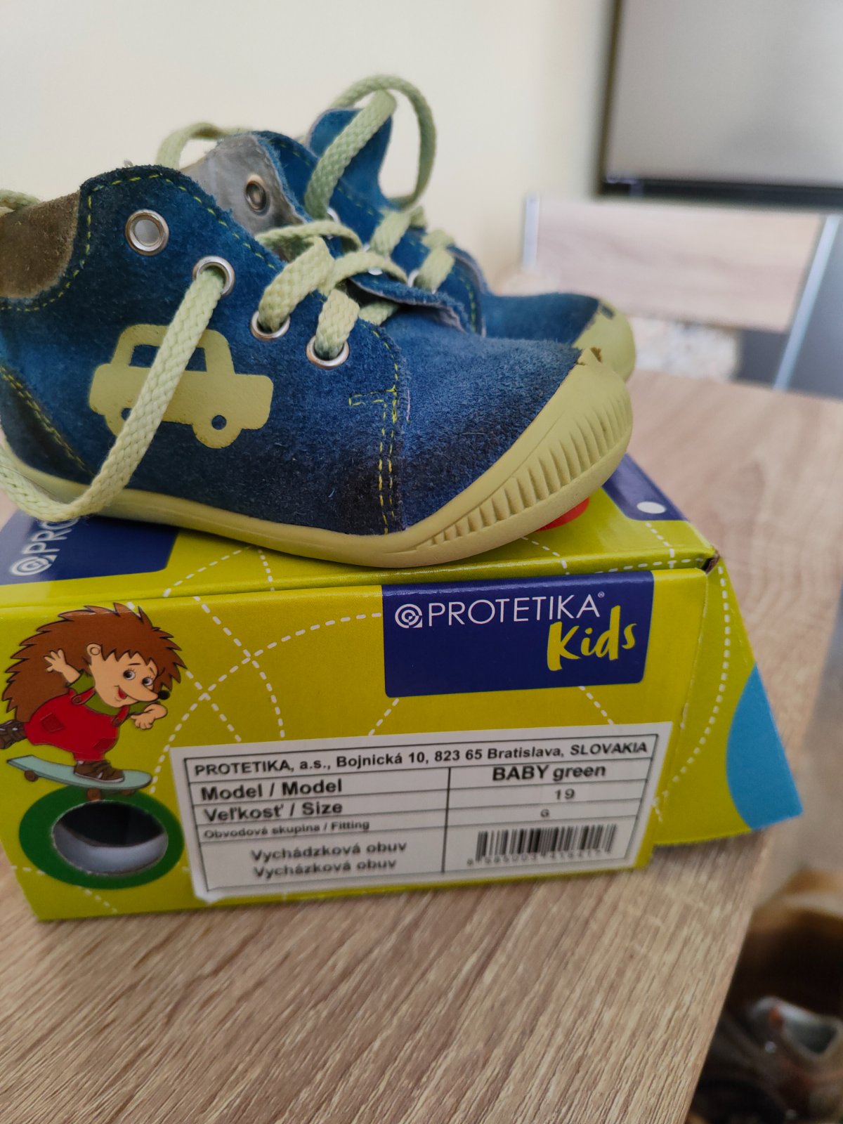 Predám topánočky Protetika veľkosť 19 vo veľmi dobrom stave.Trošku vpredu vybledla modrá farba ale inak žiadne poškodenia
