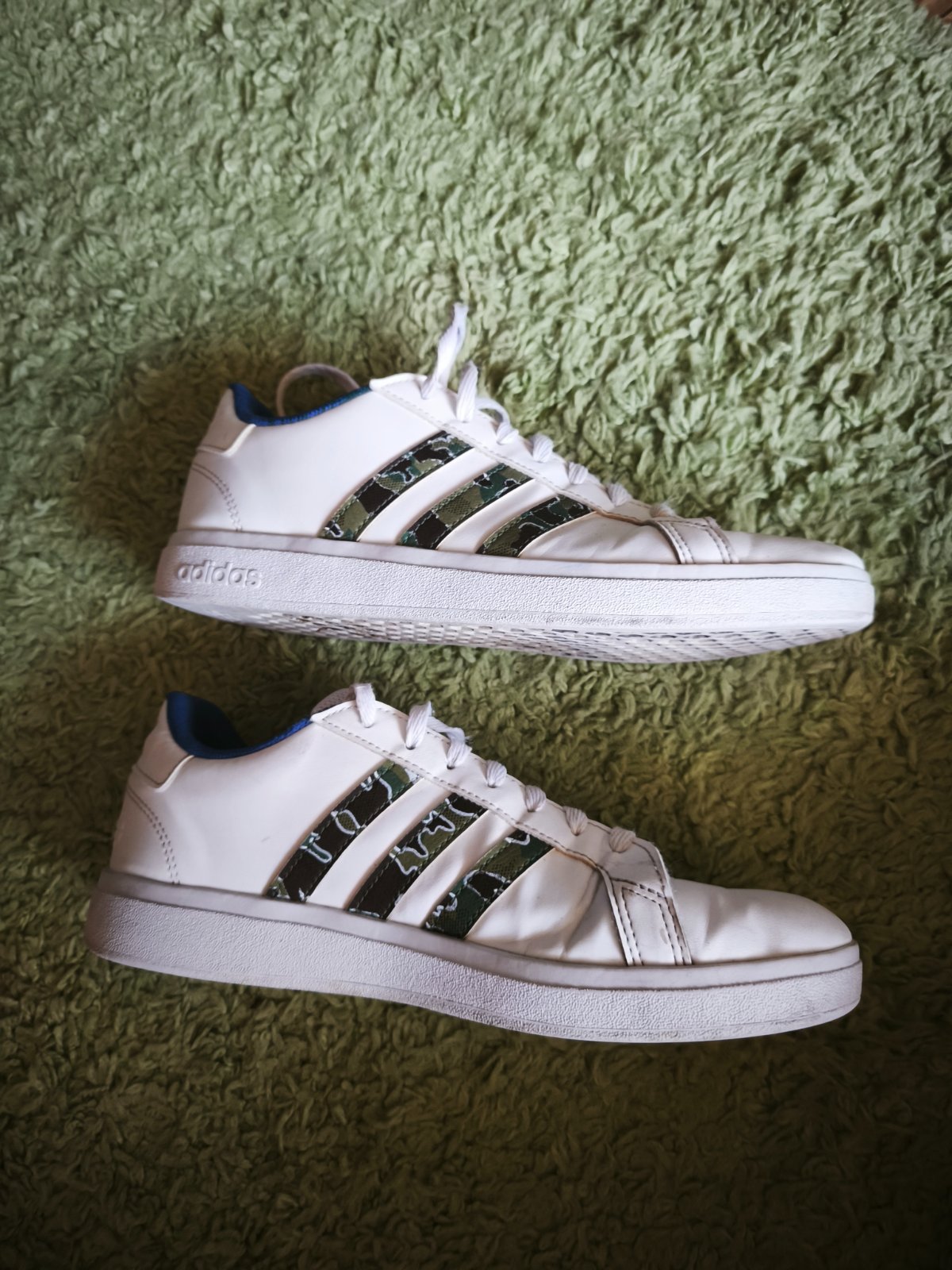 Tenisky nosené, ale v zachovalom stave. Biele kožené (umelá koža). Bez poškodenia. Vnútorná dĺžka 24cm. Plus poštovné.