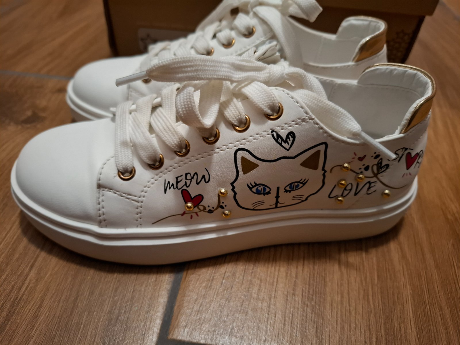 Dievčenské kožené tenisky biele s motýlikmi v dobrom stave