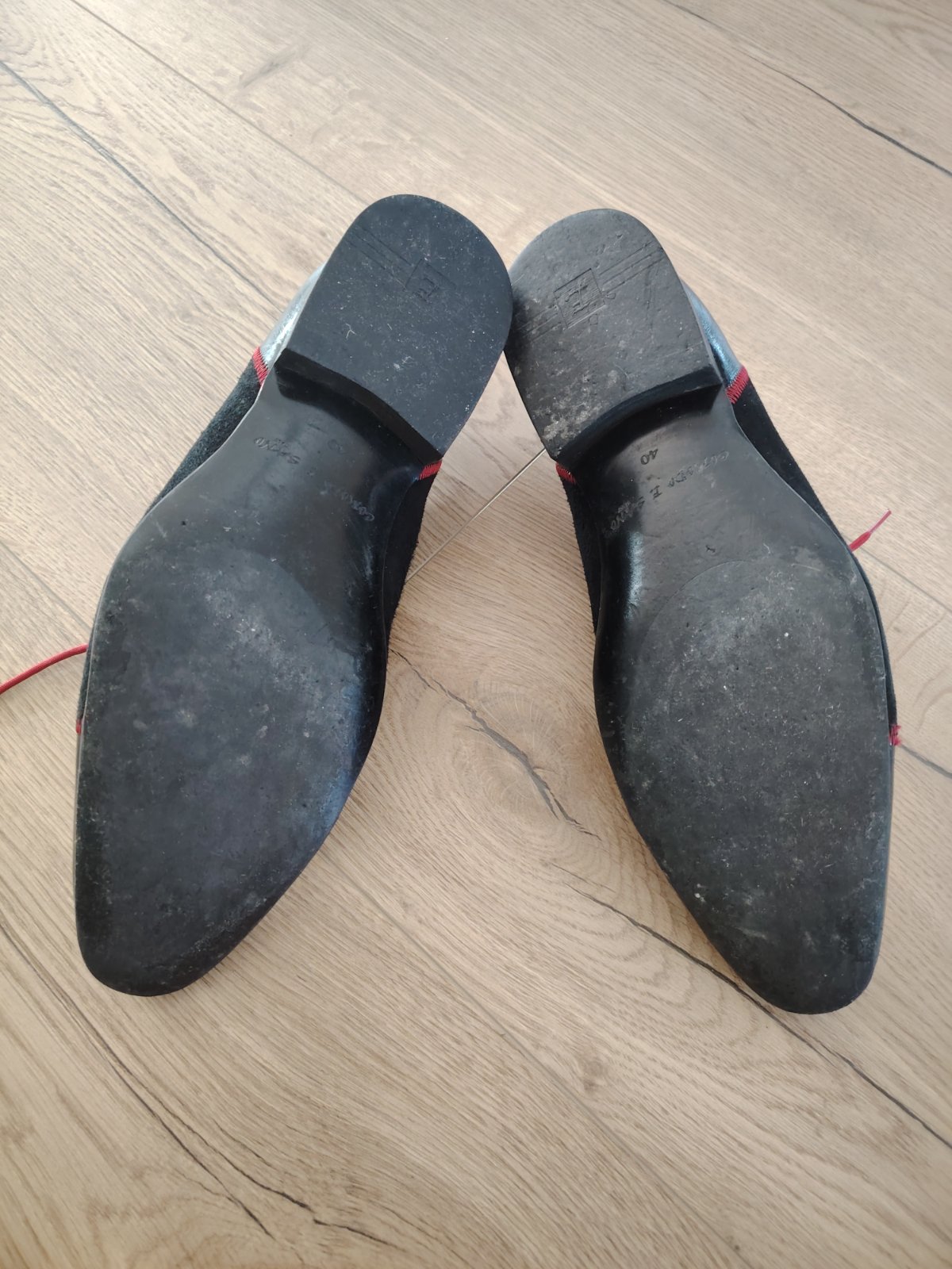 Nosené príležitostne, zodpovedá tomu aj stav. Sú kvalitné, nezodrate. Jemnučké osuchnutie na špičke- viď foto. Ľahko zatierateľné boxom. Kvôli fotkám som ich neboxovala...