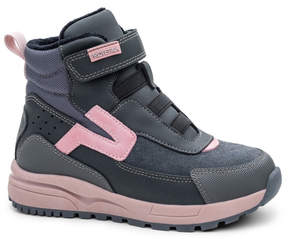 SkladomDievčenské vychádzkové zimné topánky sú vyrobené z brúsenej a hladkej kože v kombinácii s kvalitným textilným materiálom.Topánky sú v sivej farbe, doplnené ružovými prvkami. Elastické šnúrky dopĺňajú zapínanie na suchý zips.Vo vnútri majú zateplenú vyberateľnú flísovú stielku a mäkkú kožušinku.Zvýšená traktorová podošva je protišmyková, odolná, má klinový tvar a užšiu špičku.Špička a päta sú chránené pogumovaným materiálom.Nad pevným opätkom je praktické uško na obúvanie.Na stielke je jemne podporená klenba chodidla.Obuv má pevný opätok, ktorý zabraňuje vybočeniu piat a udržuje chodidlo v správnom postavení.Obuv je vyrobená z kvalitných certifikovaných materiálov.