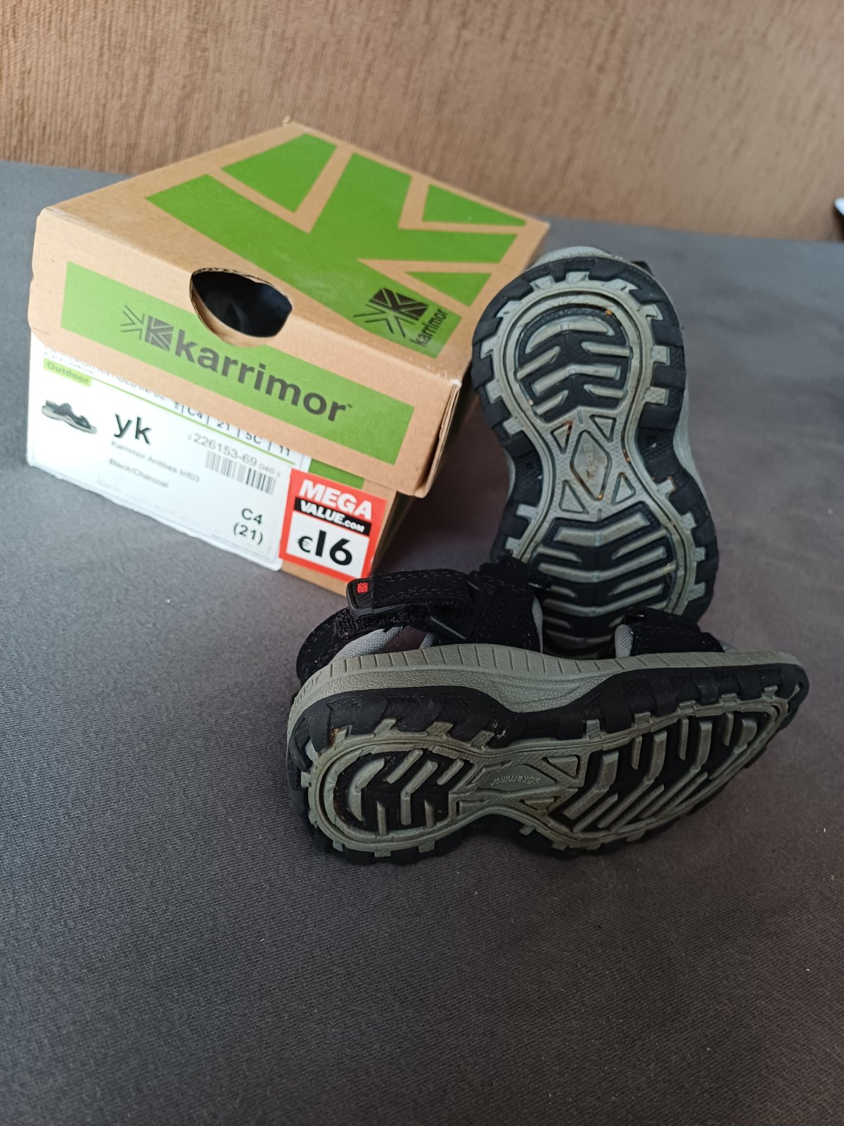 Veľkosť 21, boli super, ale sú stále neschodene, na jednej chyba tá ružová lemovacia ružová páska,alebo čo to je 😁. Sú super v tom, že sa nožička vetrá. Cena 2,50€