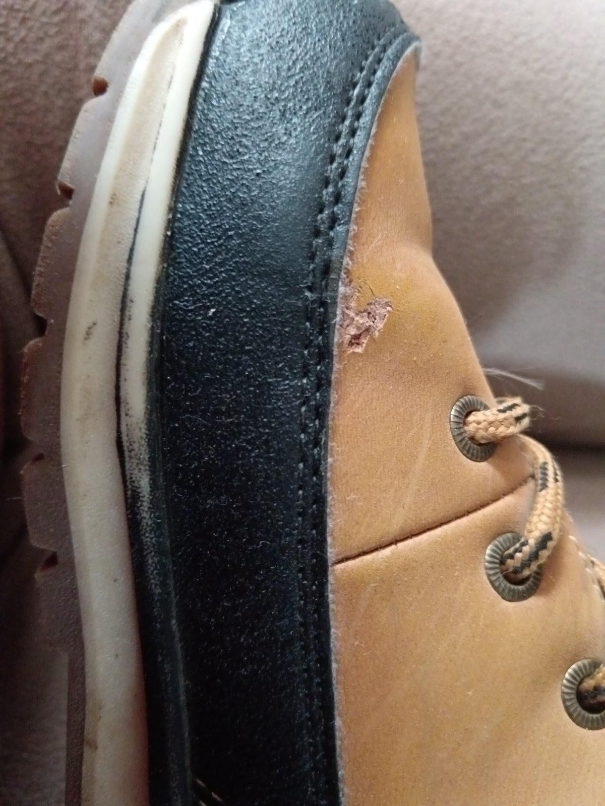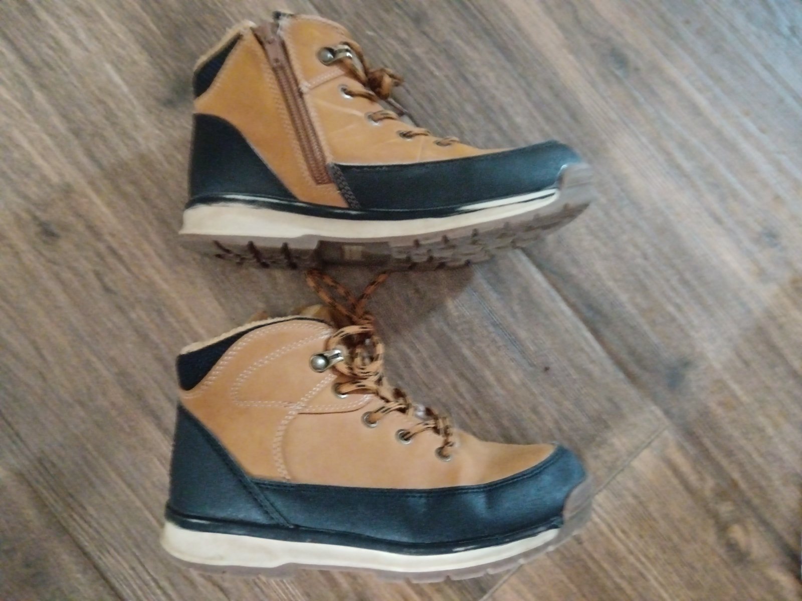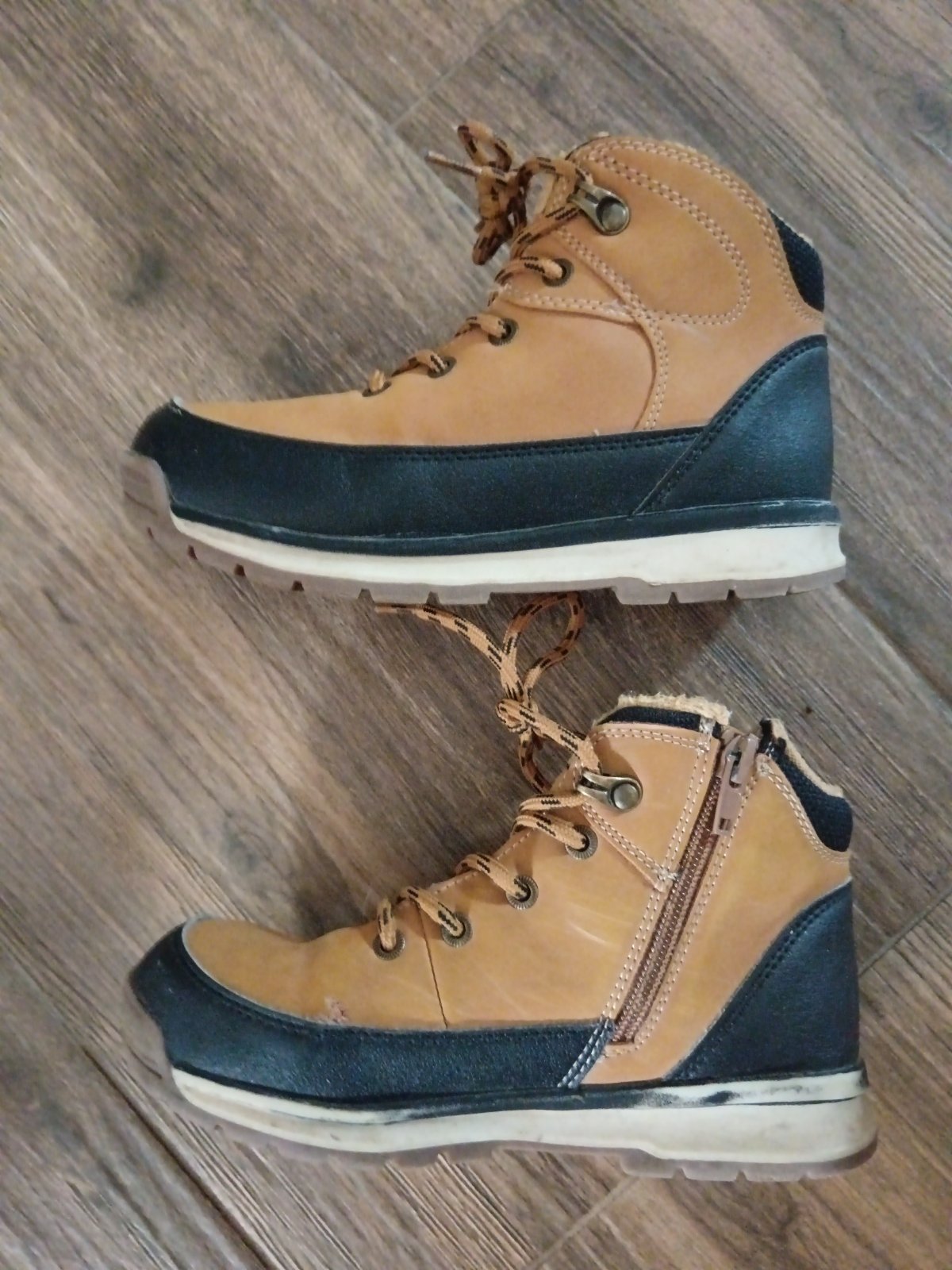 V nosenom stave. Poškodenie na jednej čižme nafotené.