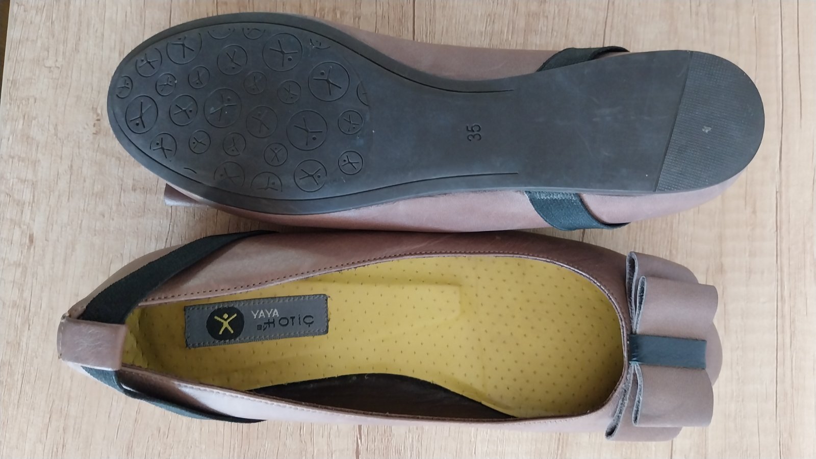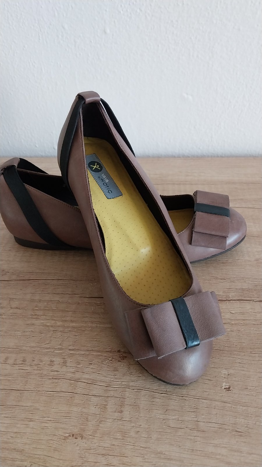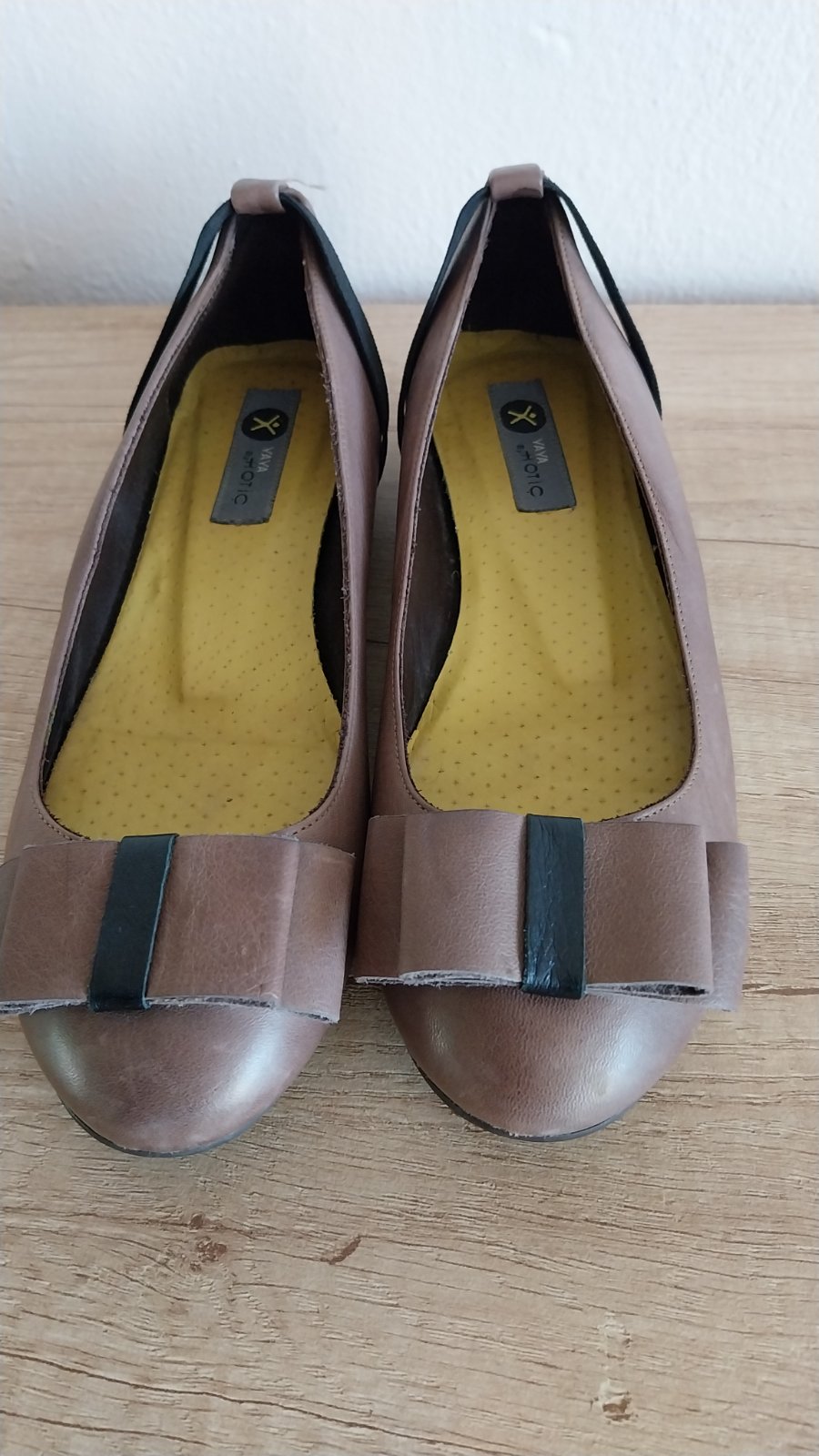 Hnedé kožené baleríny s mašličkou. Anatomická stielka. Obuté 2x, sú nám malé. (10)