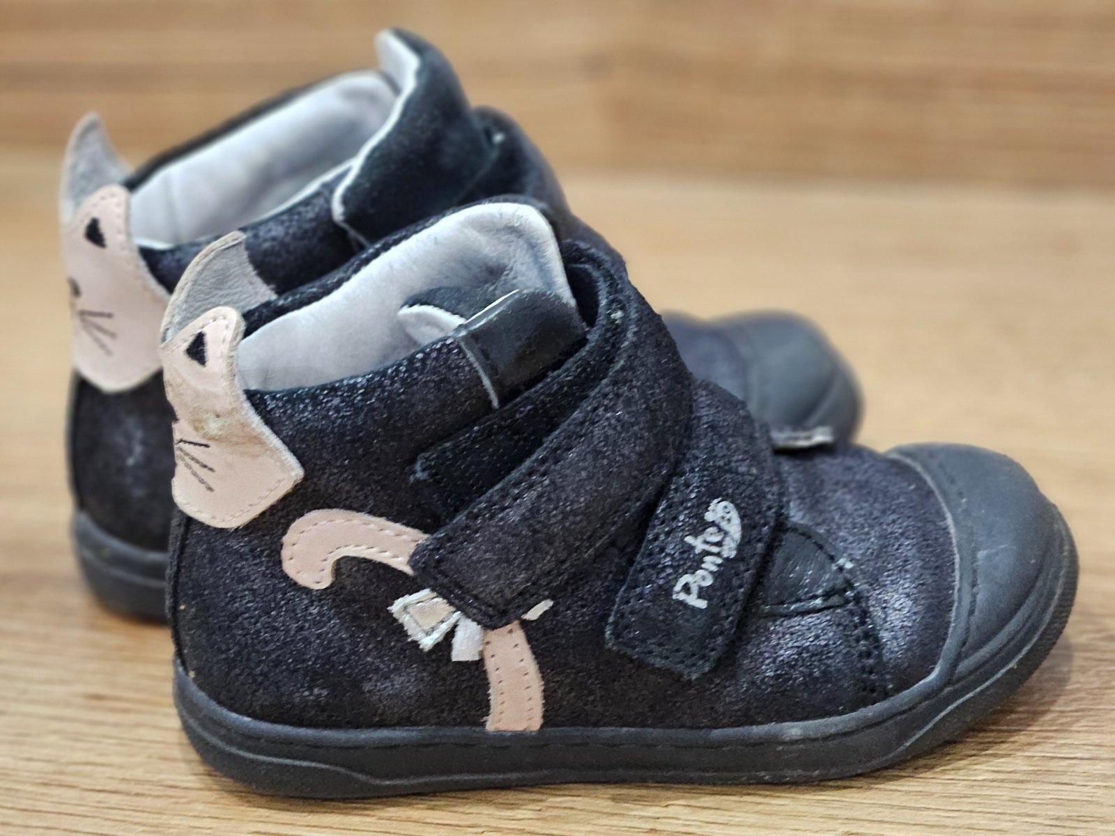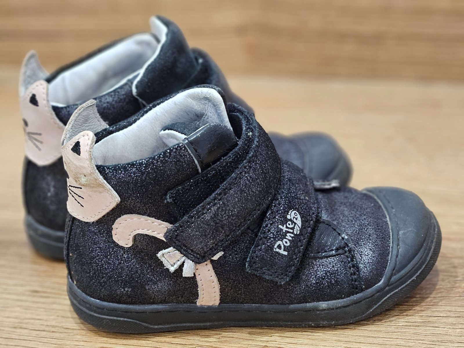 Predám krásne prechodné topánočky čiernej farby s ružovými mačičkami, značky Ponte...veľmi málo nosené. Cena 15 eur + poštovné
