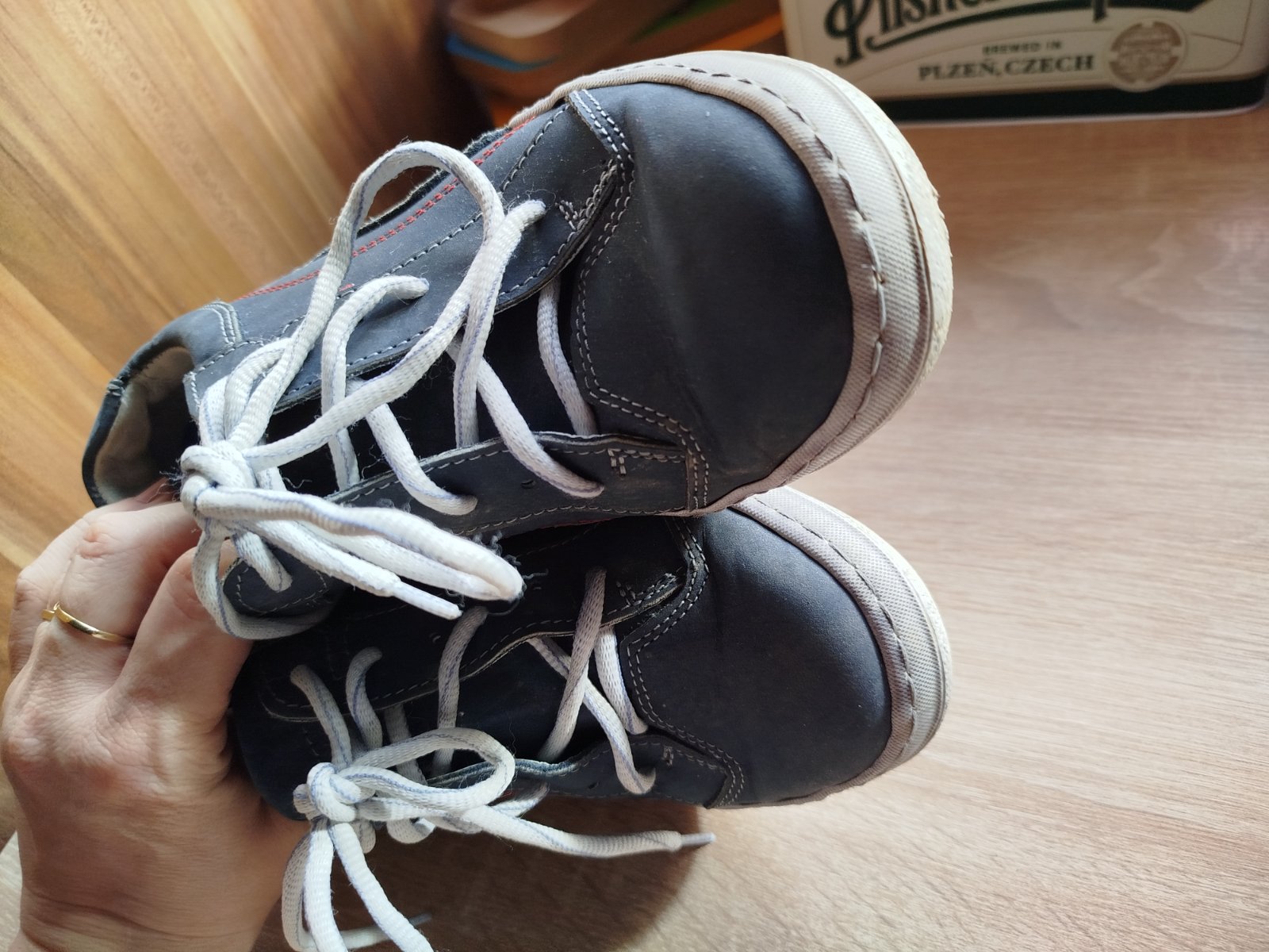 nosené, zachovalé, veľkosť udaná č.37, podľa mňa mensie, keďže vnútorná dĺžka je 23cm, na doraz 23,5cm