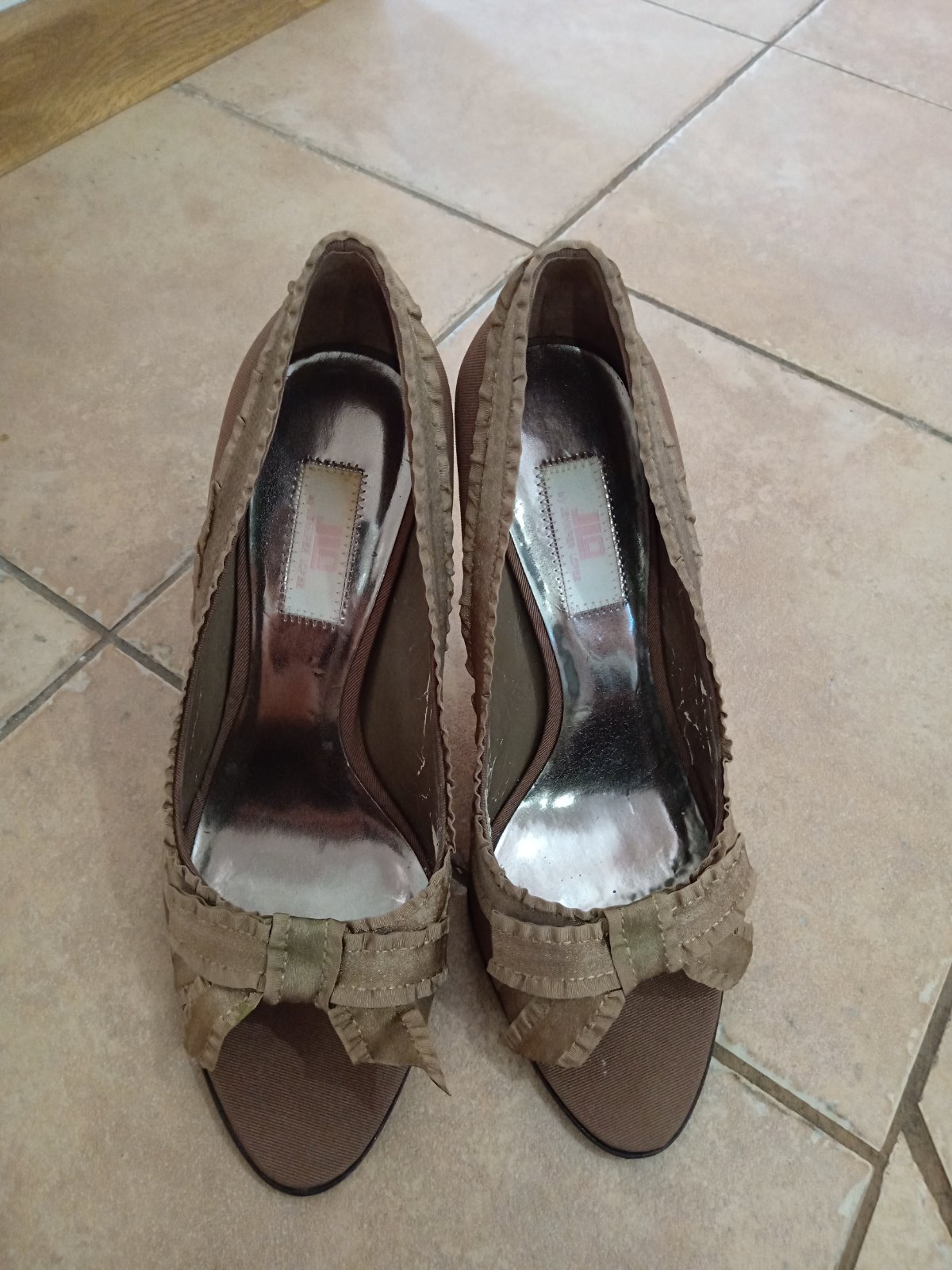 Obuté asi2x na fotenie,ešte sú pôvodné nálepky na spodku zabudli sme odlepiť.Svetlo hnedá akokeby brúsené koža,značka je Juliet.Bez poškodenia,krásna farba. Cena+pošta