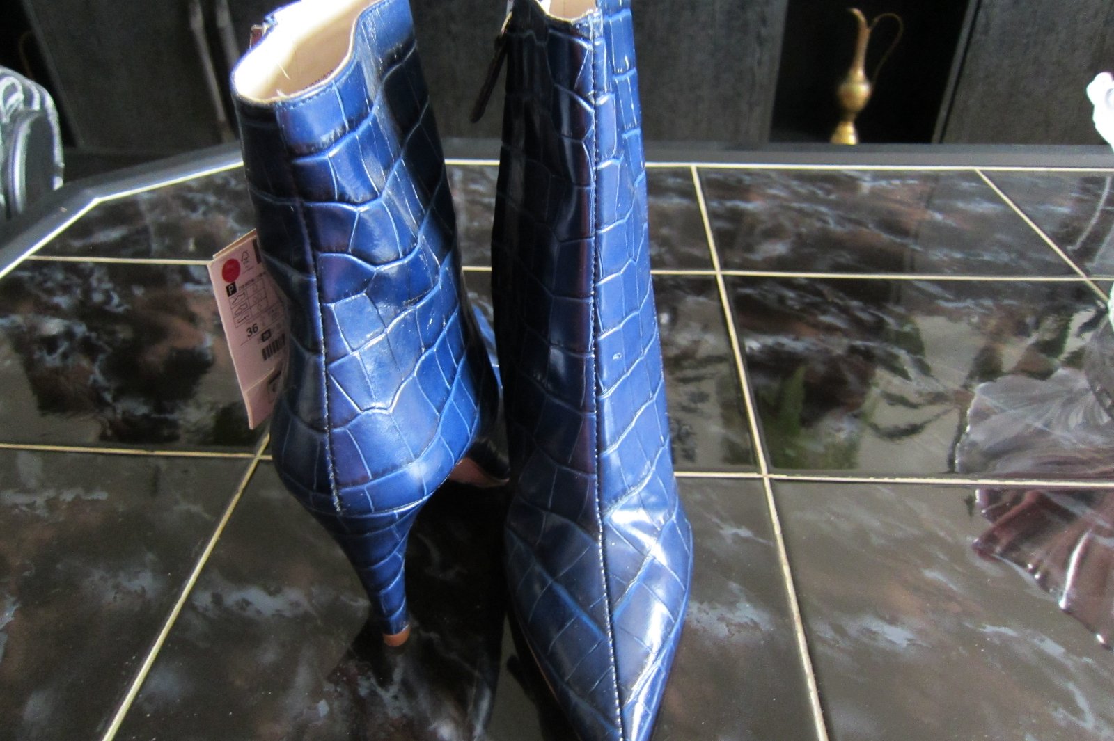 nenosene modre clenkove cizmicky do vysky 13cm s 8cm opatkom.vel.pise 36 ale je skor 35 na uzsiu nohu,este s cenovkou 90,0eur + post.