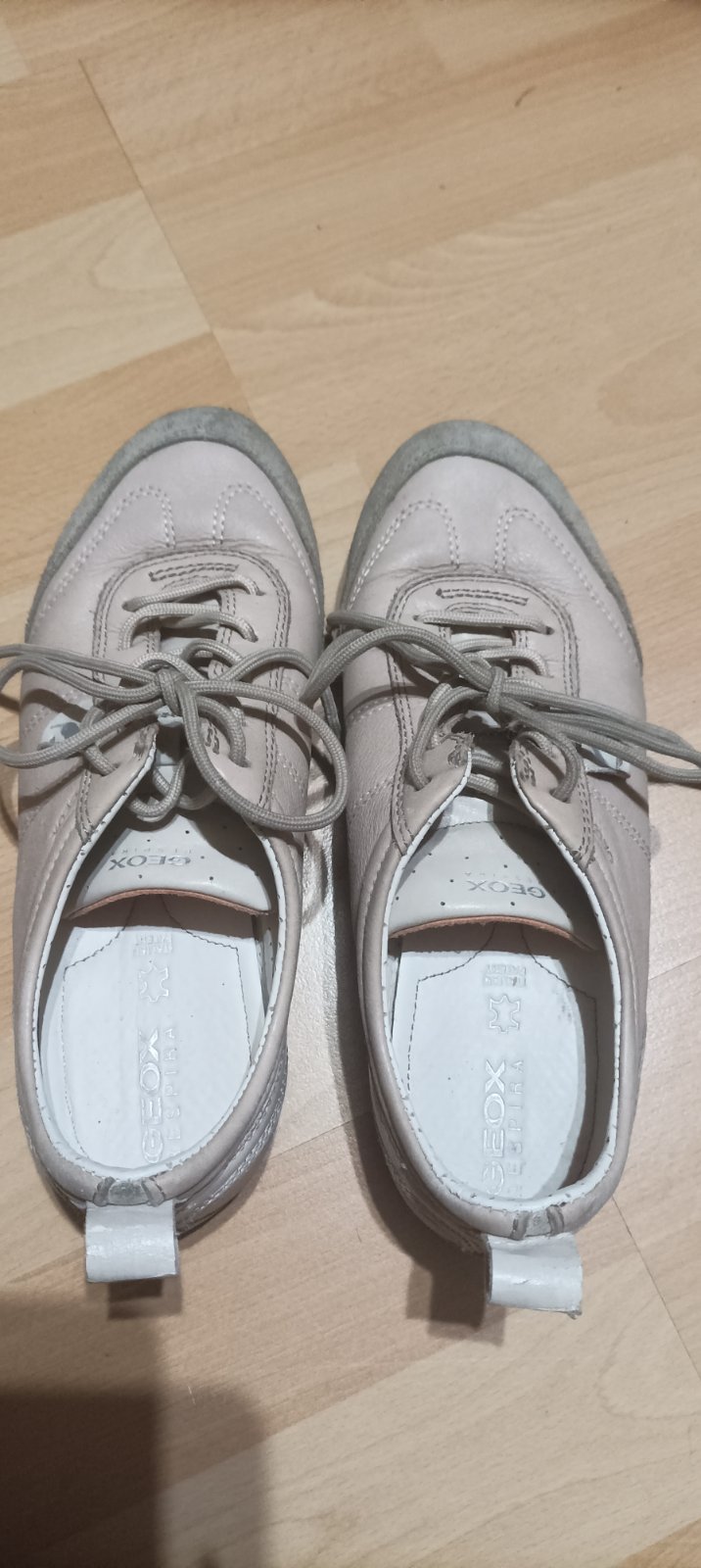 Kvalitné GEOX topánky. Majú známky nosenia (viď. Foto - odretá špička - no nie odlepená, zošúchaná ekokoža na päte pri nápise GEOX, malé vydratie vo vnútri na päte), suché zipsy držia dobre. Po dvo...