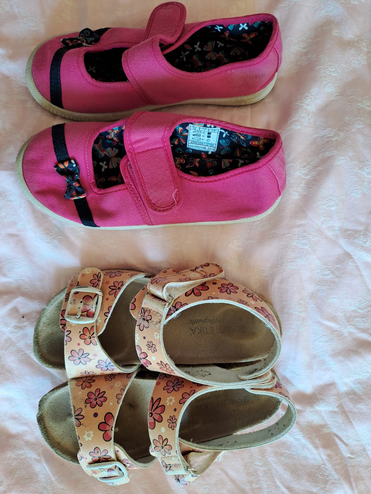 Papuče skoro nenosené pisana veľkosť 32 ale su väčšie a protetika nosené. Cena spolu 9e.