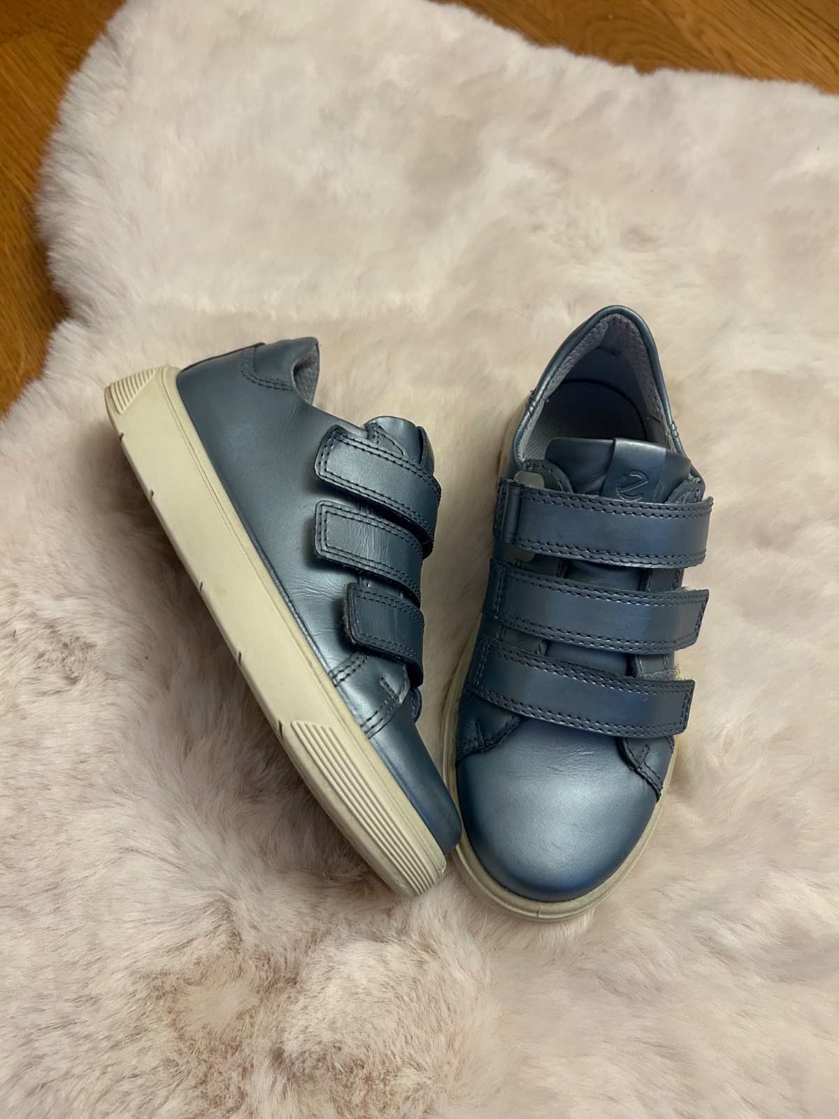 Predám krásne pastelovo-perleťové, bledunko-modré , kožené , nepremokavé topánočky Ecco. Špička na pravej topánočke kúsok oškretá, nie je to moc vidieť .Uhradím 50%poštovného!