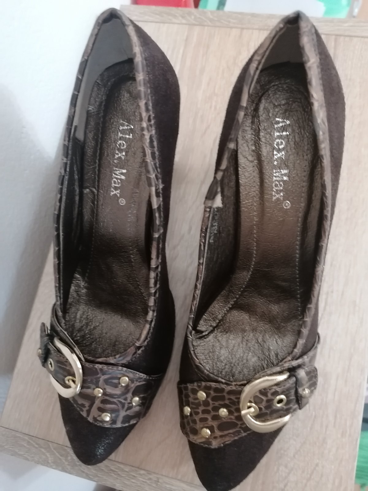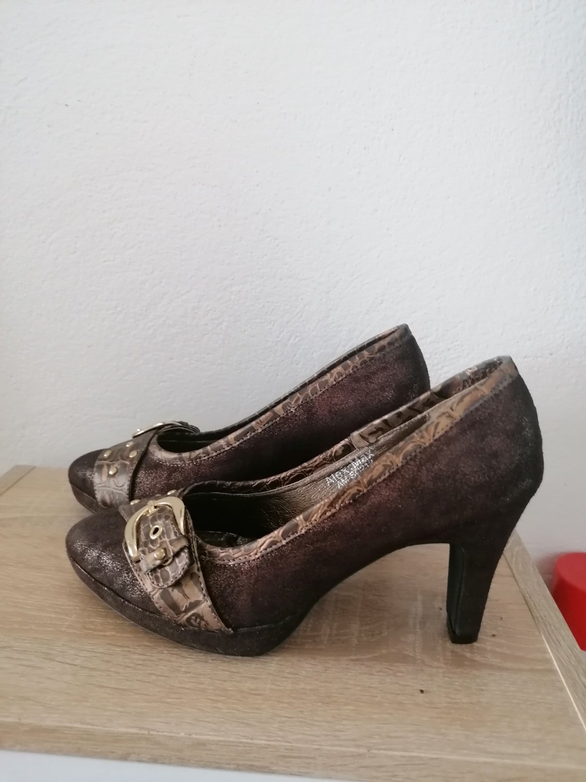 Predám krásne čokoládovohnedé perleťové lodičky, možno 2x obuté, opätok 9 cm