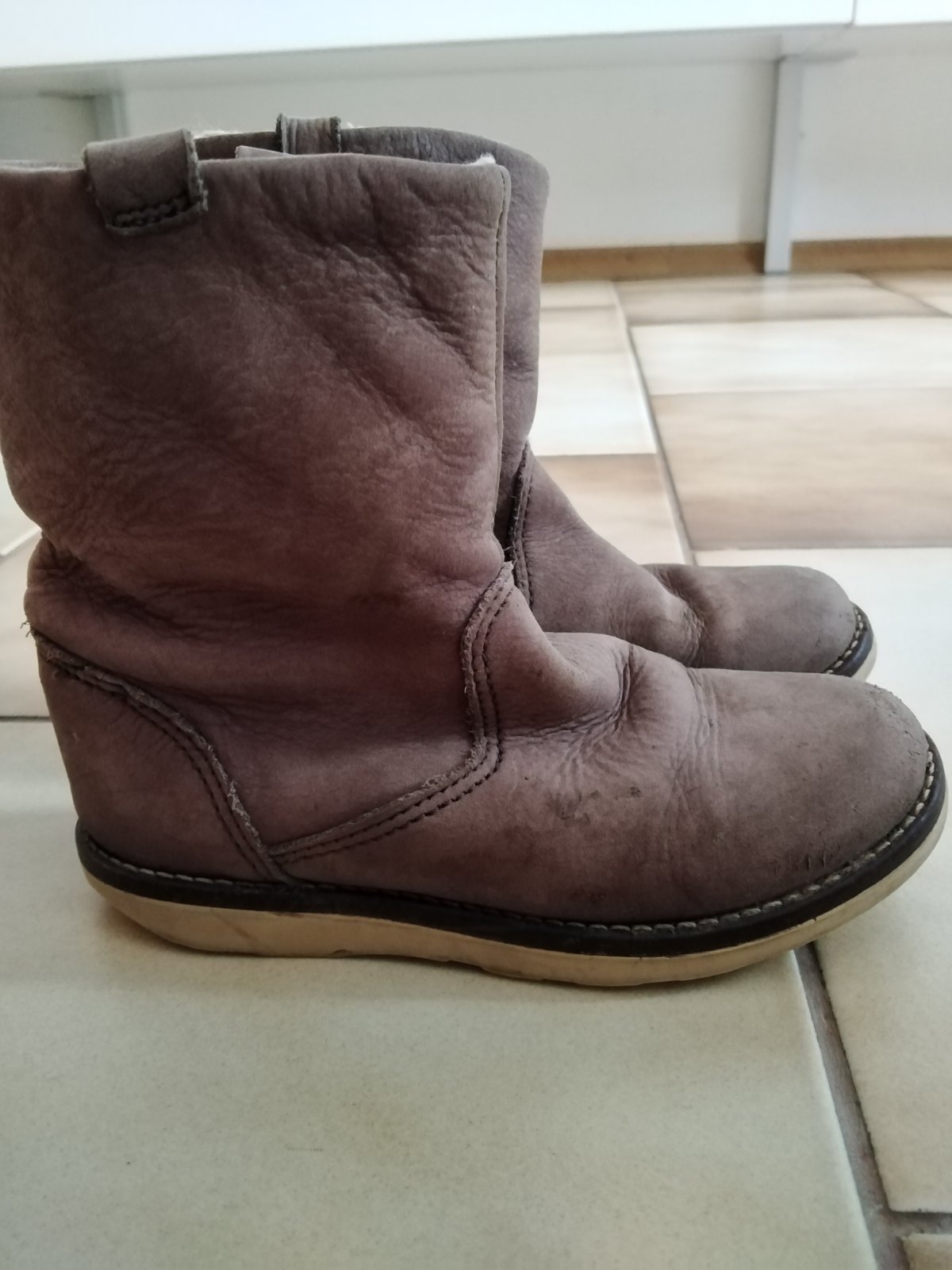 Ponúkam kožené čižmičky na prechodné obdobie veľ. 28, zvnútra zateplené, vhodné na donosenie, ľahko sa obúvajú.