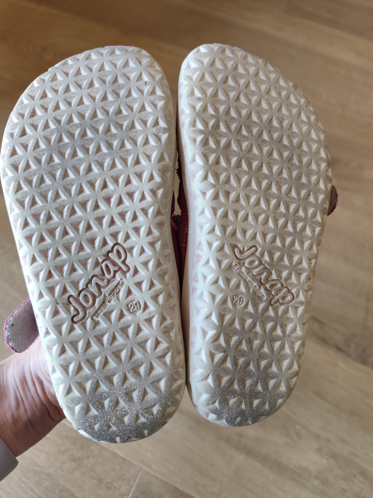 Posuniem malinko nosene sandalky Jonap fella ruzove trblietave v. 29 . VD 18,7 x 7,5 cm. Vhodne aj ako prezuvky do skoly. Cena 30€ uz vratane posty. Posielam vyhradne doporucene postou/do postoveho valikoboxu.