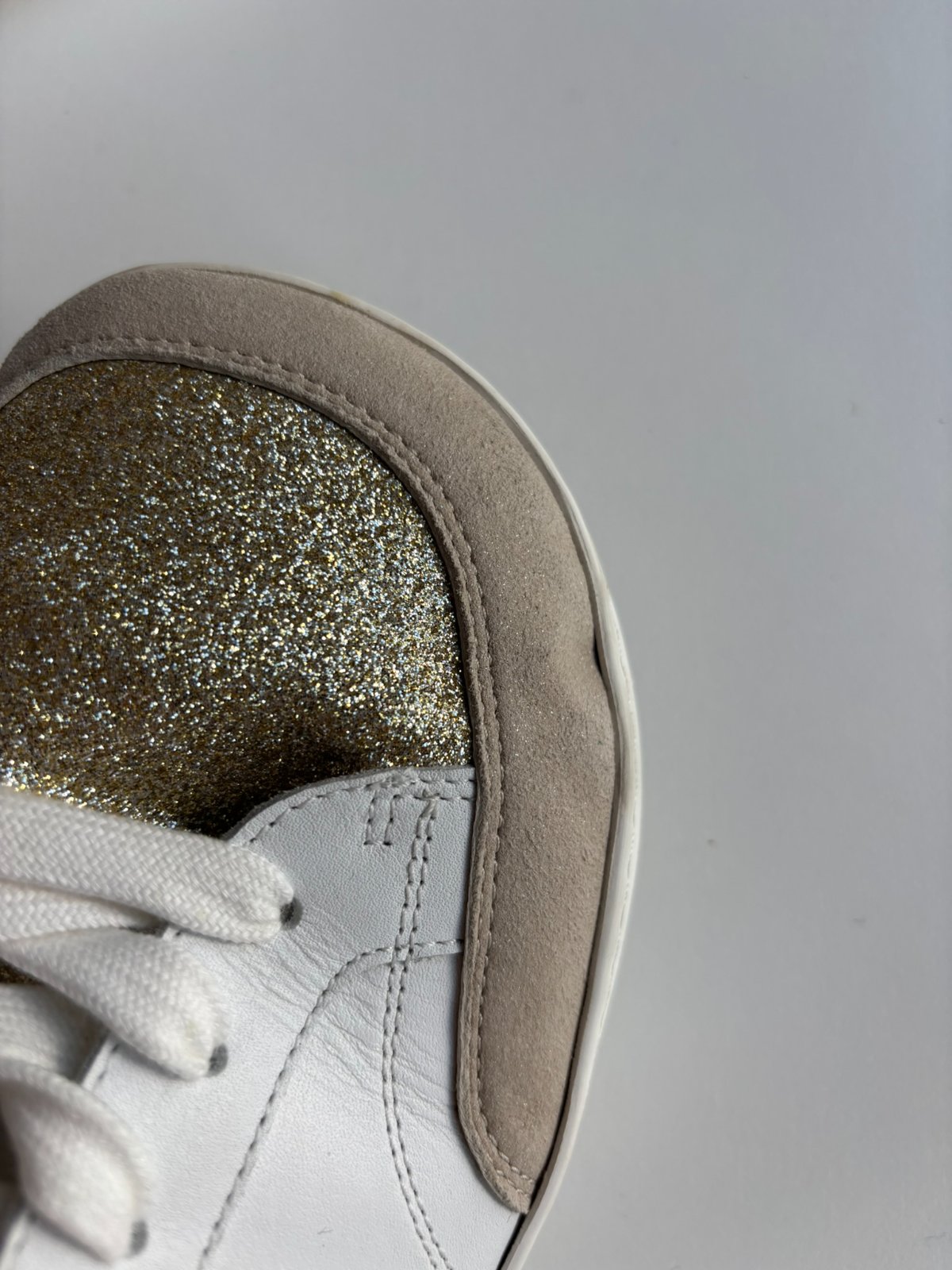 Glamour sa stretáva s pohodlím v našich teniskách CHARM. Každý krok iskrí, keď sa očarujúce materiály so žiarivými glitrami zladia s jemnou kvalitnou kožou, ktorá objíma vaše nohy. Prečo si vyberať medzi luxusom a pohodlím, keď môžete mať oboje?