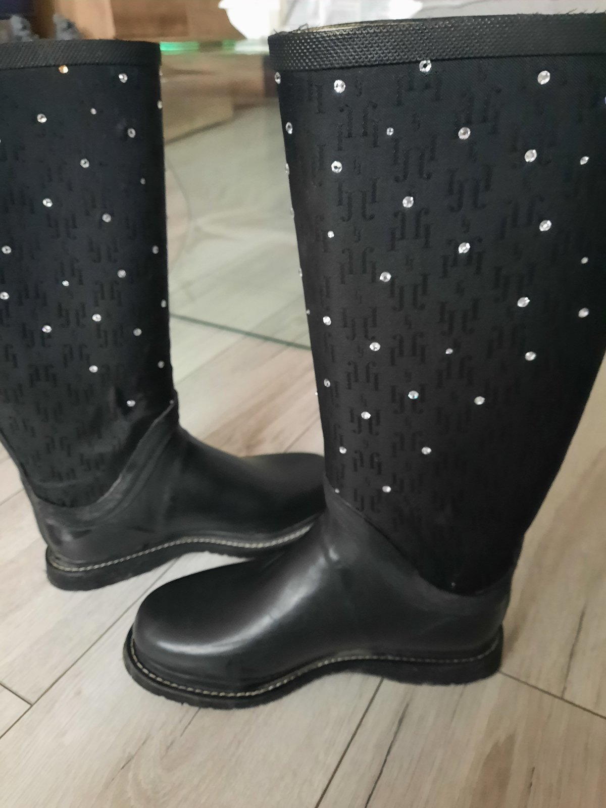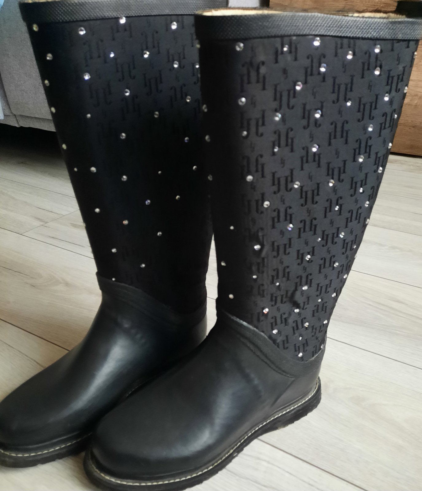 Zateplene gumáky Ilse Jacobsen z limitovanej rdicie so searovskeho krystalikmi priamo na gunakoch.