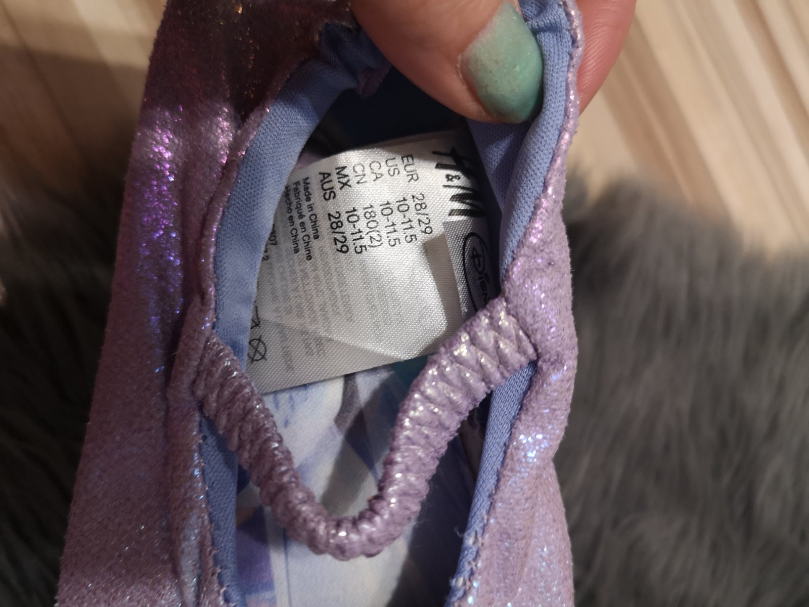 Farba svetlofialová, čisté, nepoškodené, neschodené. Po 1 dieťati. Veľkosť 28.