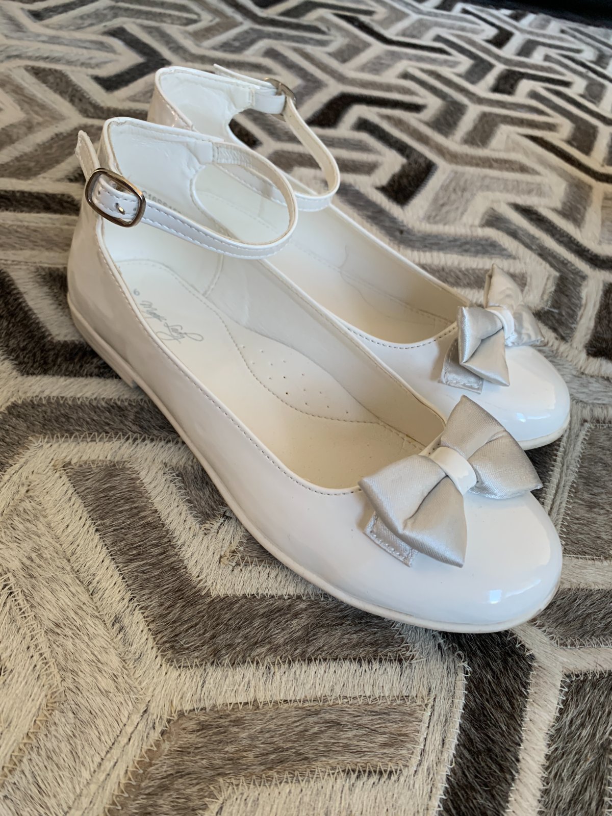 Výborný stav. Veľkosť UK 3. Obuté pri jednej príležitosti a teraz sú už dcérke malé. Veľmi pohodlné s penovou stielkou. Určite odporúčam!
