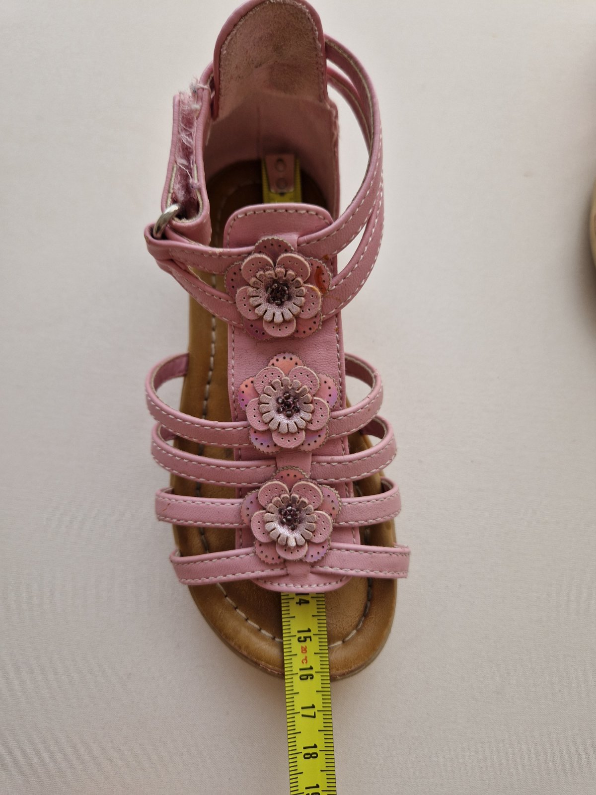 Predám pekné dievčenské sandálky, veľ. 26, vnút. dĺžka 16 cm. Sú zachovalé. Na špičkách trocha ošúchané, ale nie je to až tak vidieť. Viď. foto. Inak sú v poriadku. Dcérka ich veľmi rada nosila. Le...