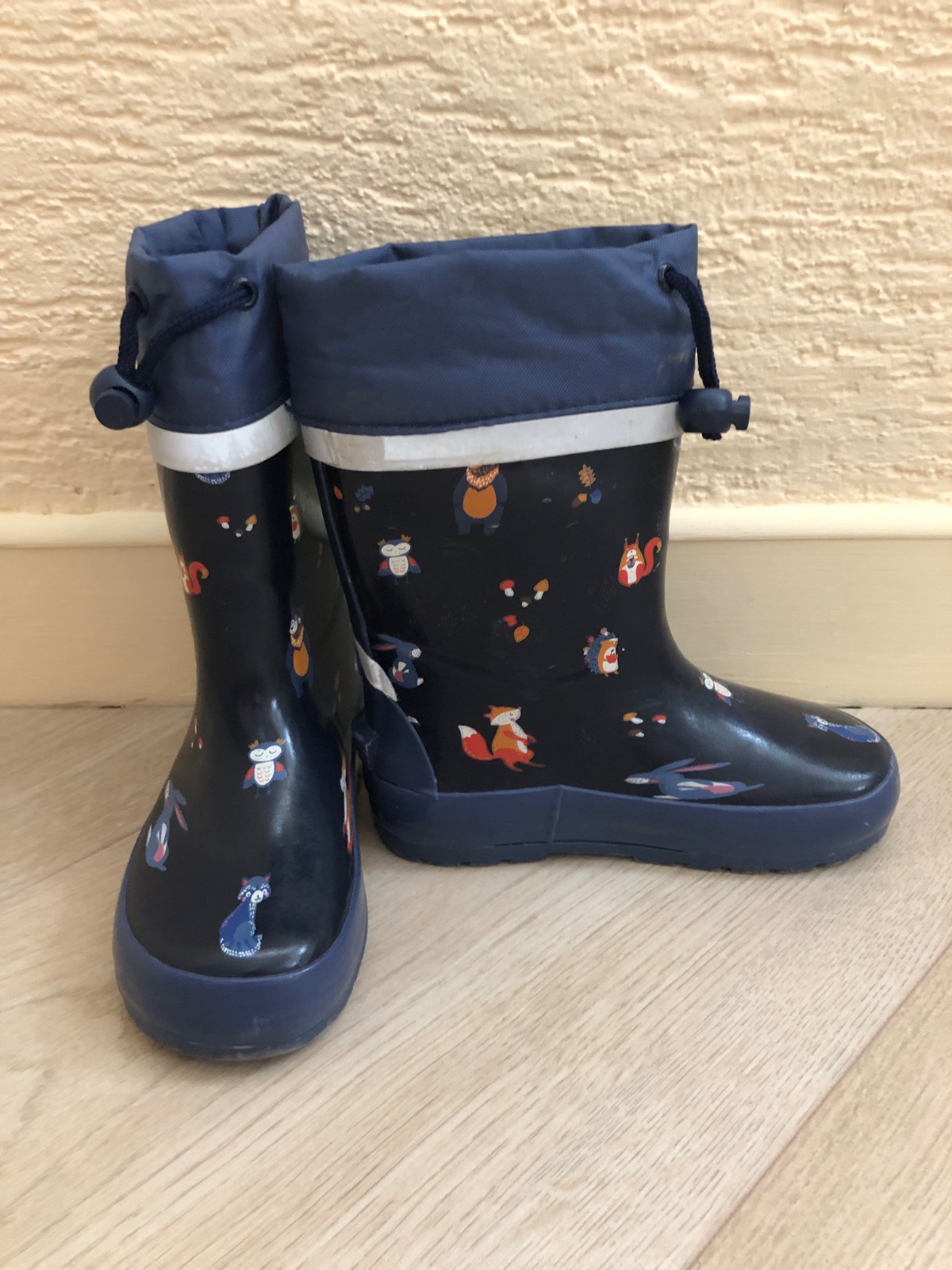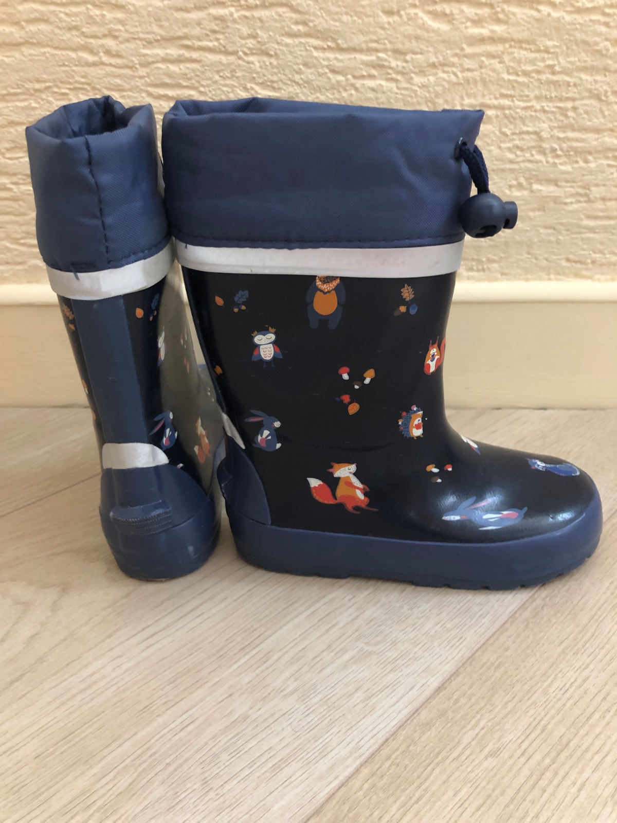 Predam gumaky zn. TCM - Tchibo s celoplosnou potlacou lesnych zvieratiek, velkost je dvojcislo 26/27 s vyberatelnou stielkou na vyrovnanie velkosti.