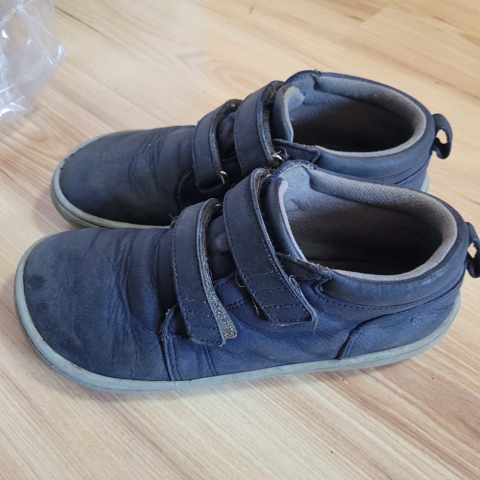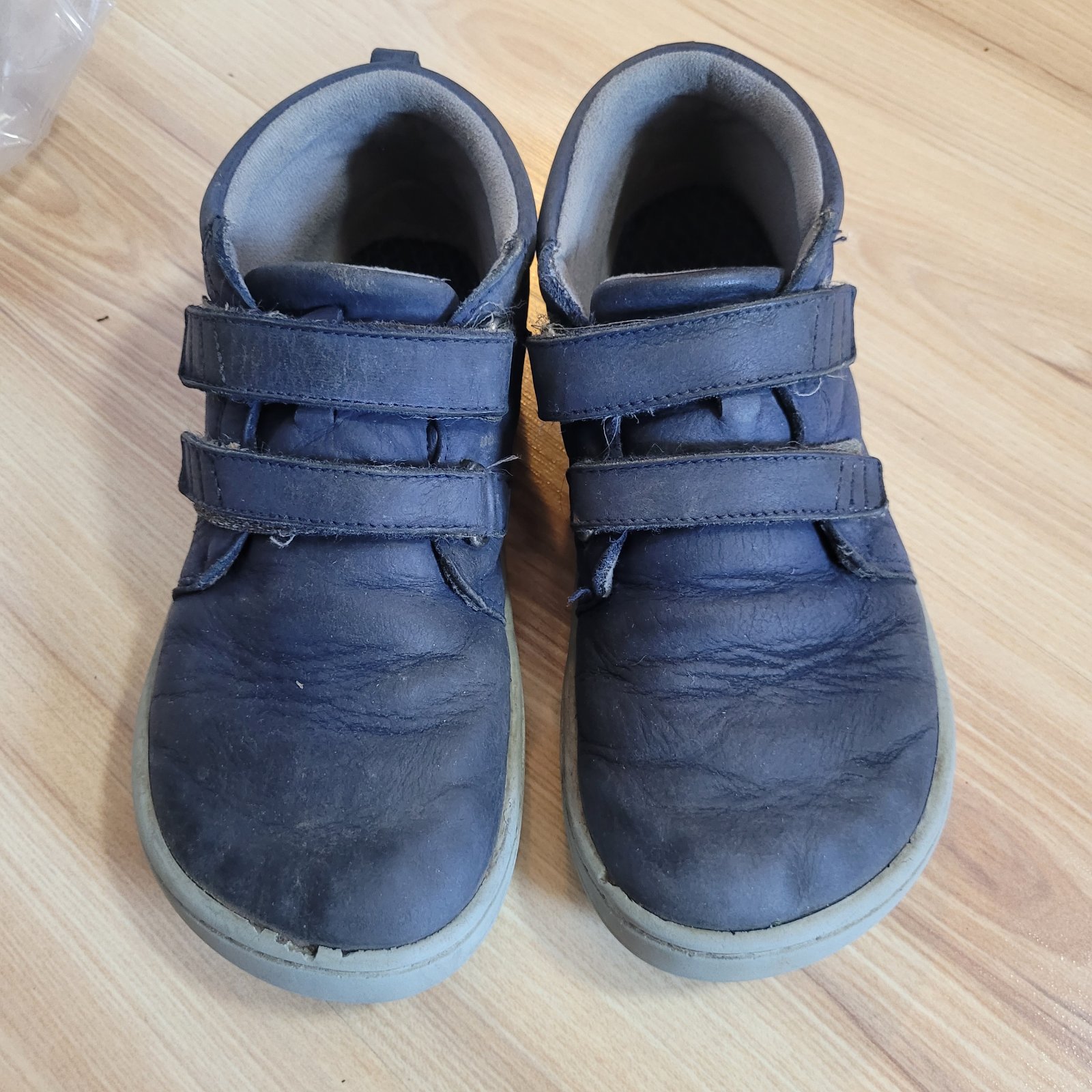 Kožené barefooty pre chlapca. Majú už oškreté špičky, ale isto ešte niekoho potešia. Vnútorná dĺžka 22,5 cm.